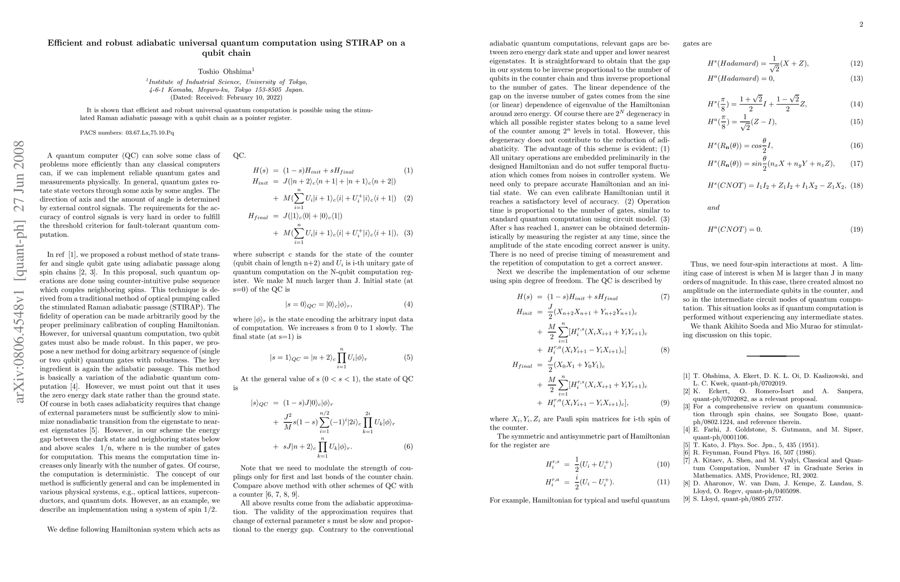 It is shown that efficient and robust universal quantum computation is possible using the stimulated Raman adiabatic passage with a qubit chain as a pointer register.
