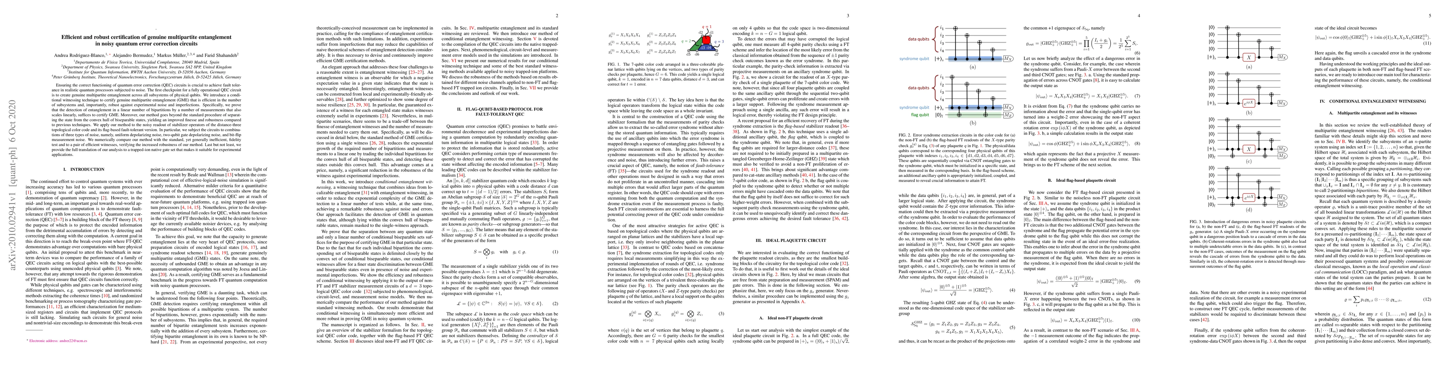 This paper introduces a conditional witnessing technique for certifying genuine multipartite entanglement in noisy quantum error correction circuits, demonstrating efficiency and robustness against experimental noise. The proposed method detects entanglement in a linear number of bipartitions with linear measurement scaling, surpassing previous techniques in finesse and robustness.