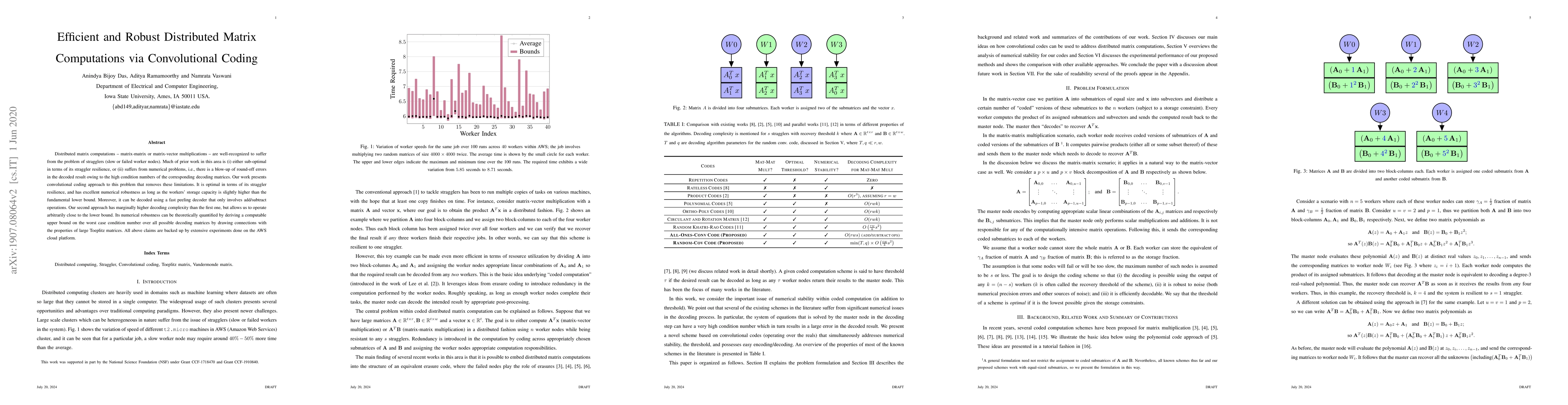 Researchers developed a new approach to efficient distributed matrix computations that uses convolutional coding, providing optimal straggler resilience and excellent numerical robustness. The method can be decoded using simple add/subtract operations and has been tested on the AWS cloud platform with promising results.
