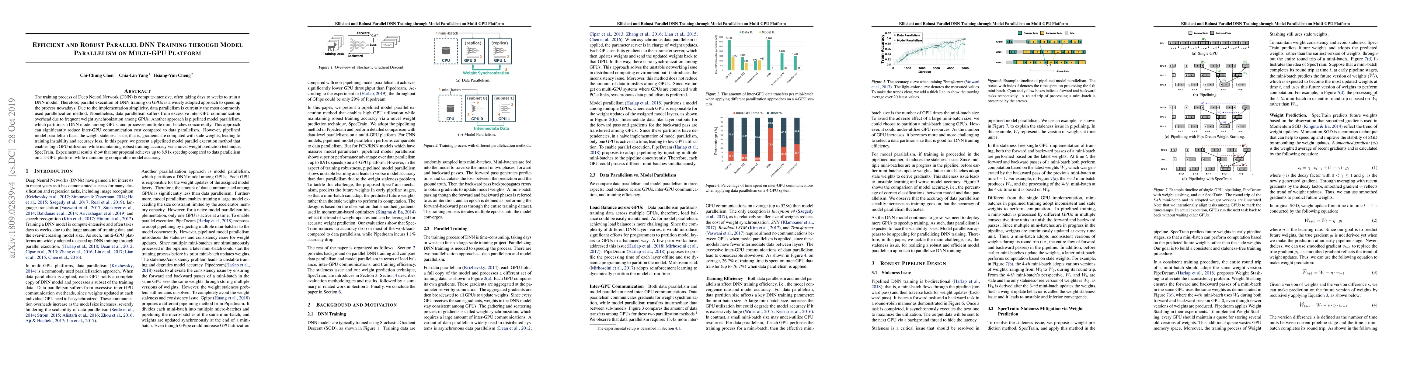 This paper proposes a pipelined model parallel method, SpecTrain, for efficient and robust DNN training on multi-GPU platforms. It achieves significant speedups by reducing inter-GPU communication and addresses weight staleness through a novel weight prediction technique, maintaining model accuracy.