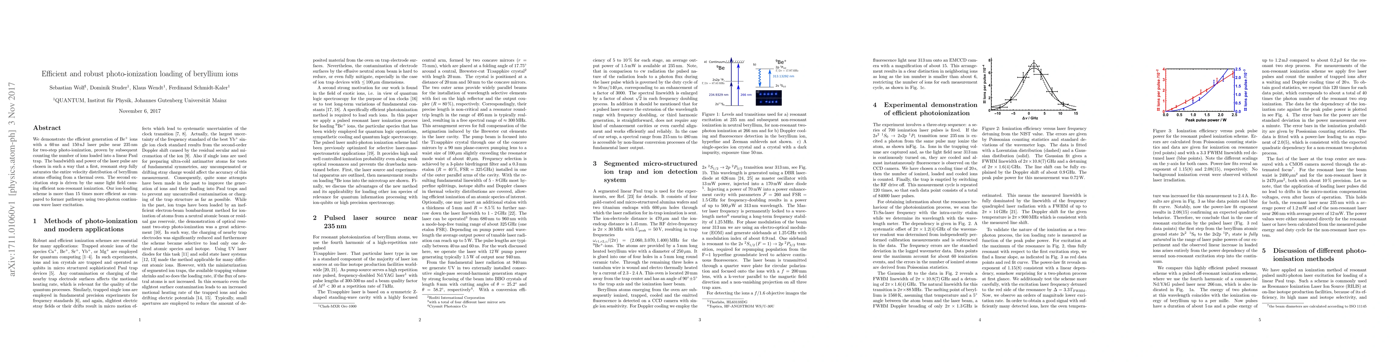 This paper presents a highly efficient method for generating Be$^+$ ions using a 60 ns, 150 nJ laser pulse at 235 nm for two-step photo-ionization, significantly outperforming previous two-photon continuous wave laser techniques. The method employs a resonant first step and a non-resonant second step to load ions into a linear Paul trap.