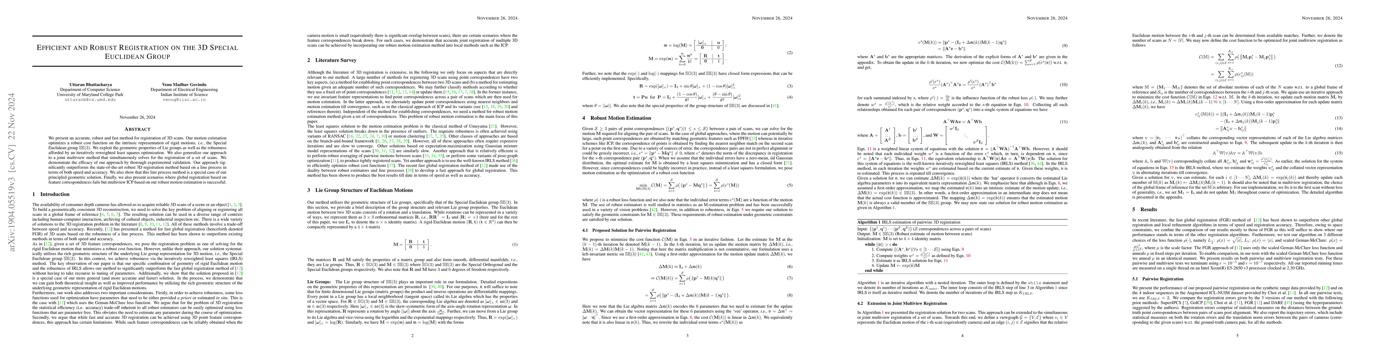 We present an accurate, robust and fast method for registration of 3D scans. Our motion estimation optimizes a robust cost function on the intrinsic representation of rigid motions, i.e., the Special Euclidean group $\mathbb{SE}(3)$. We exploit the geometric properties of Lie groups as well as the robustness afforded by an iteratively reweighted least squares optimization. We also generalize our approach to a joint multiview method that simultaneously solves for the registration of a set of scans. We demonstrate the efficacy of our approach by thorough experimental validation. Our approach significantly outperforms the state-of-the-art robust 3D registration method based on a line process in terms of both speed and accuracy. We also show that this line process method is a special case of our principled geometric solution. Finally, we also present scenarios where global registration based on feature correspondences fails but multiview ICP based on our robust motion estimation is successful.