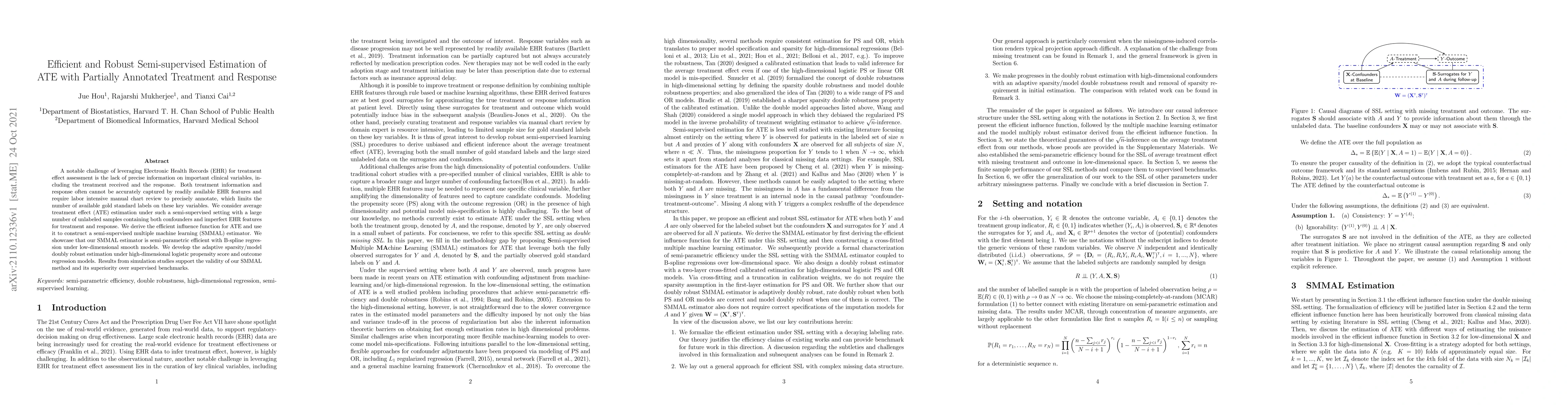 This paper presents an efficient semi-supervised estimator for average treatment effect (ATE) in Electronic Health Records (EHR) settings where treatment and response data are partially annotated. The proposed semi-supervised multiple machine learning (SMMAL) estimator leverages unlabeled data to improve estimation accuracy, demonstrating semi-parametric efficiency and adaptive sparsity under different modeling scenarios.