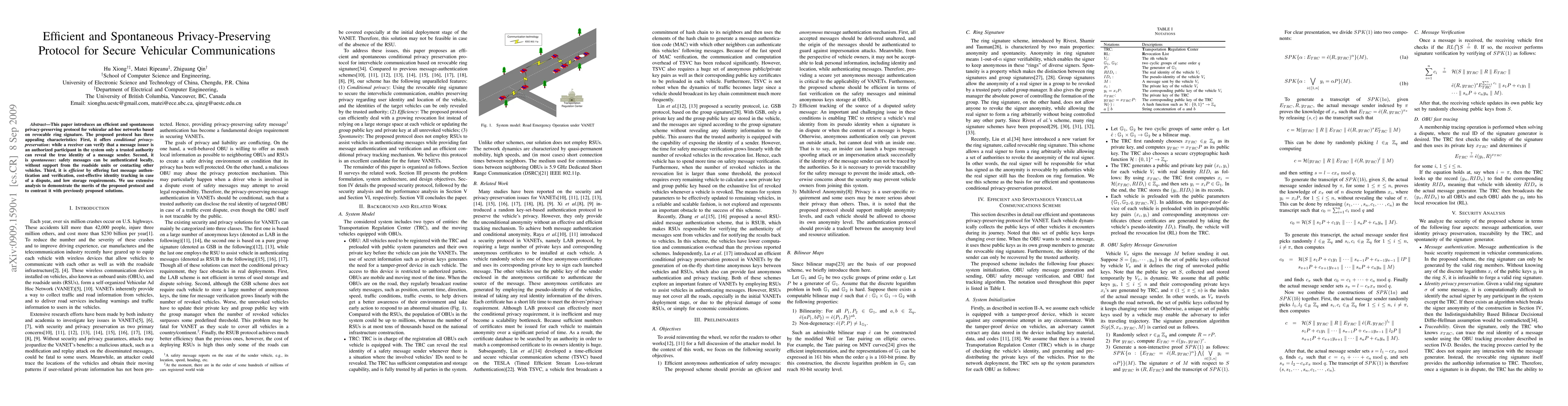 This paper proposes an efficient and spontaneous privacy-preserving protocol for vehicular ad-hoc networks using revocable ring signature, which offers conditional privacy, local authentication, and efficient message verification while maintaining low storage and computational costs. The protocol is shown to outperform existing solutions through extensive analysis.