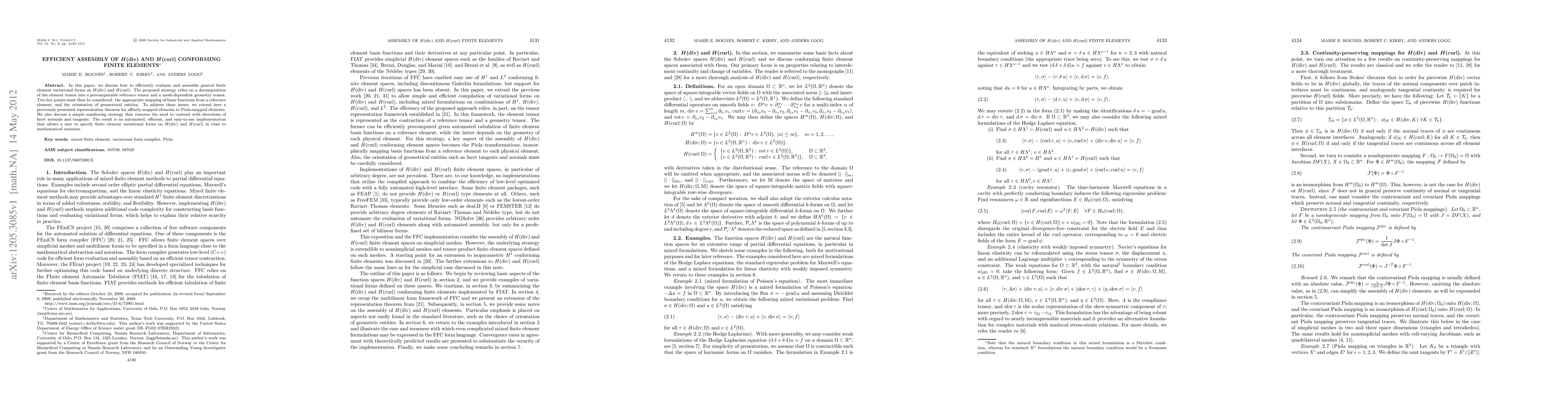 This paper proposes an efficient method for assembling finite element variational forms on H(div) and H(curl) spaces by decomposing element tensors and extending a representation theorem for affine mappings to Piola mappings, simplifying the orientation of geometrical entities. The result is an automated, user-friendly implementation.