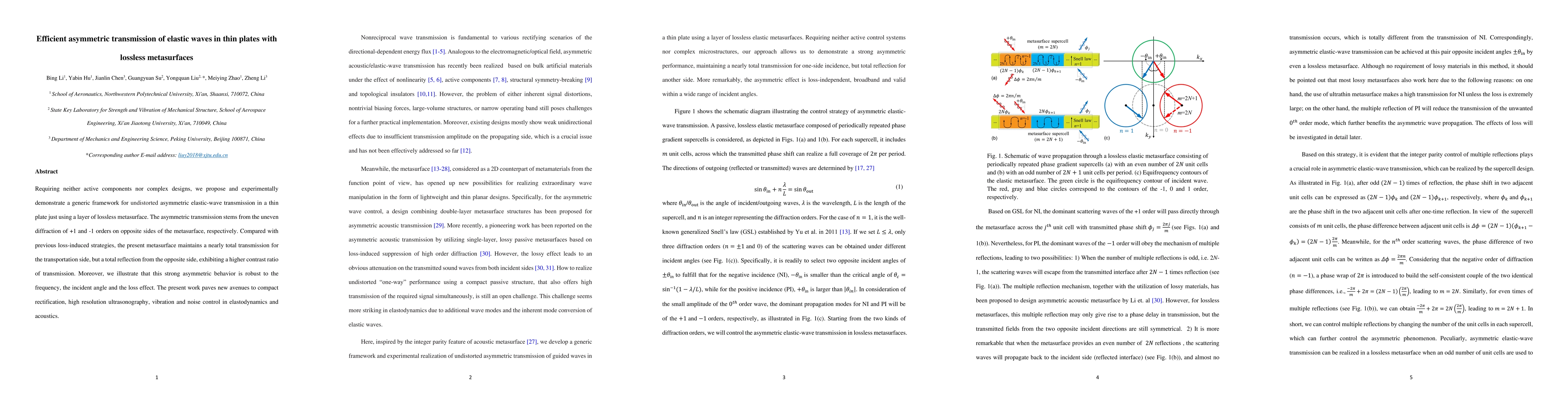 Researchers developed a simple framework for asymmetric elastic wave transmission in thin plates using lossless metasurfaces, achieving high contrast ratios with robust frequency and angle insensitivity.