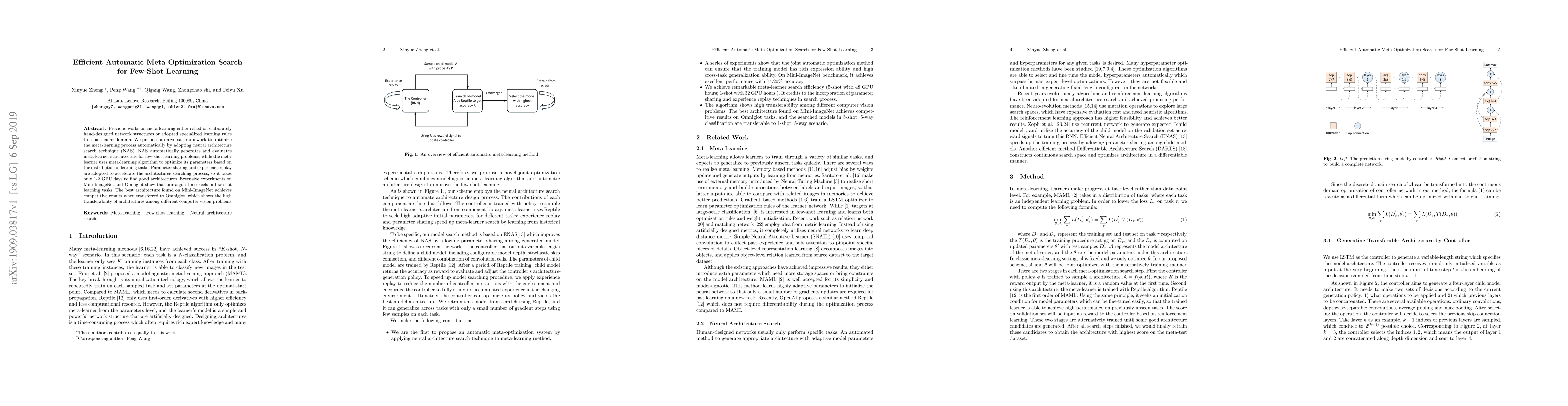 A new framework uses neural architecture search to automatically optimize meta-learning for few-shot learning, achieving competitive results in tasks like Mini-ImageNet and Omniglot.