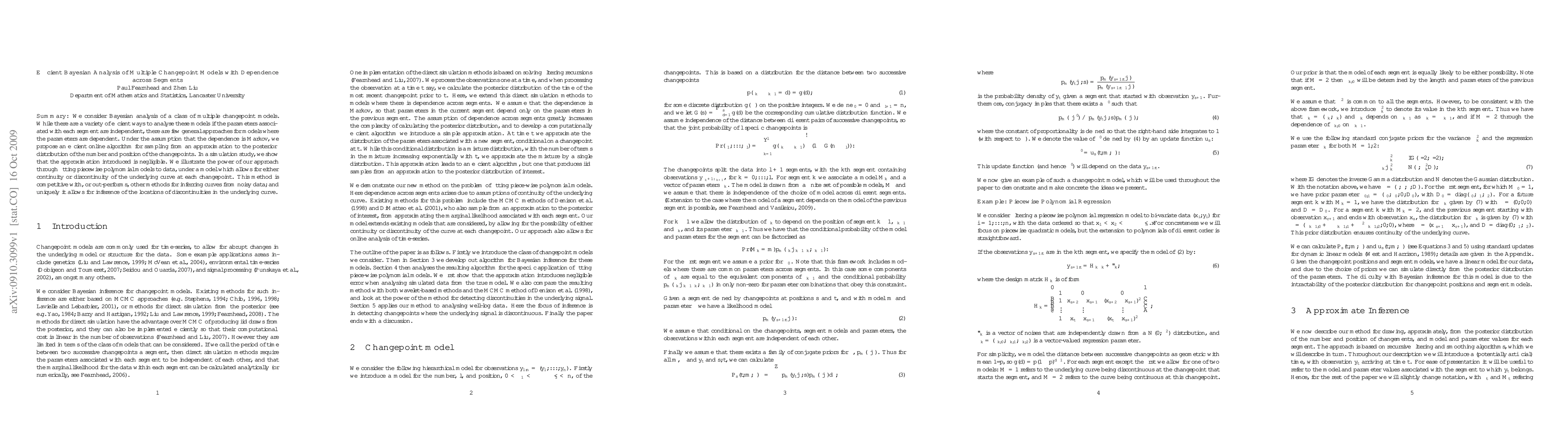 This paper proposes an efficient online Bayesian algorithm for analyzing multiple changepoint models with Markov-dependent parameters, demonstrating its effectiveness through simulations and applications to piecewise polynomial models, outperforming other methods in inferring curve changes and locating discontinuities.