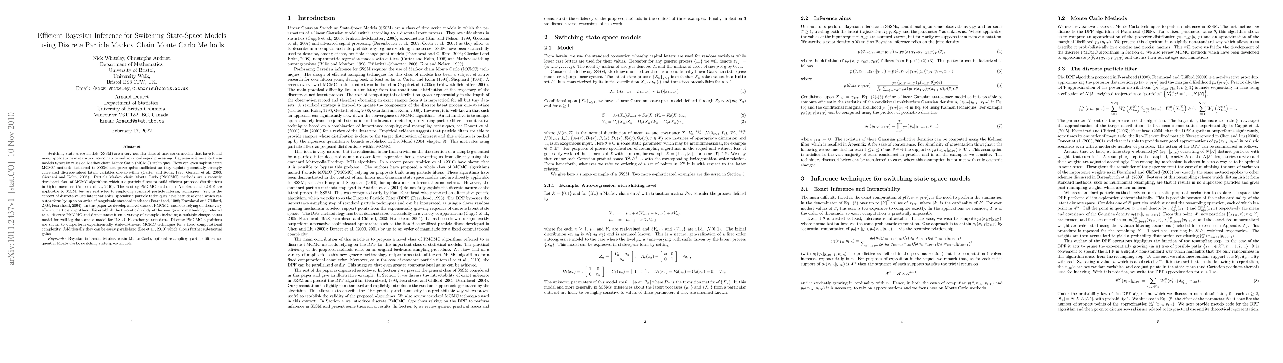 This paper introduces a novel Discrete Particle Markov Chain Monte Carlo (PMCMC) method for efficient Bayesian inference in Switching State-Space Models (SSSM). The proposed discrete PMCMC outperforms traditional MCMC techniques by leveraging specialized particle algorithms for discrete-valued latent variables, demonstrating significant improvements in computational efficiency and parallelizability.