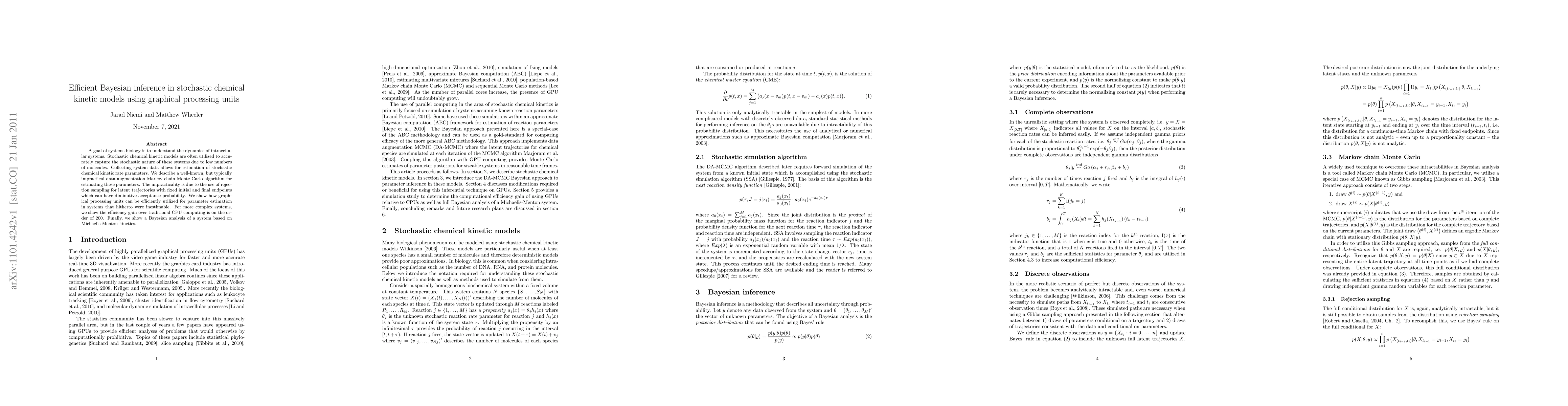 Researchers used graphical processing units to speed up Bayesian inference in stochastic chemical kinetic models, enabling faster estimation of key rate parameters for complex systems with significant efficiency gains over traditional CPU computing.