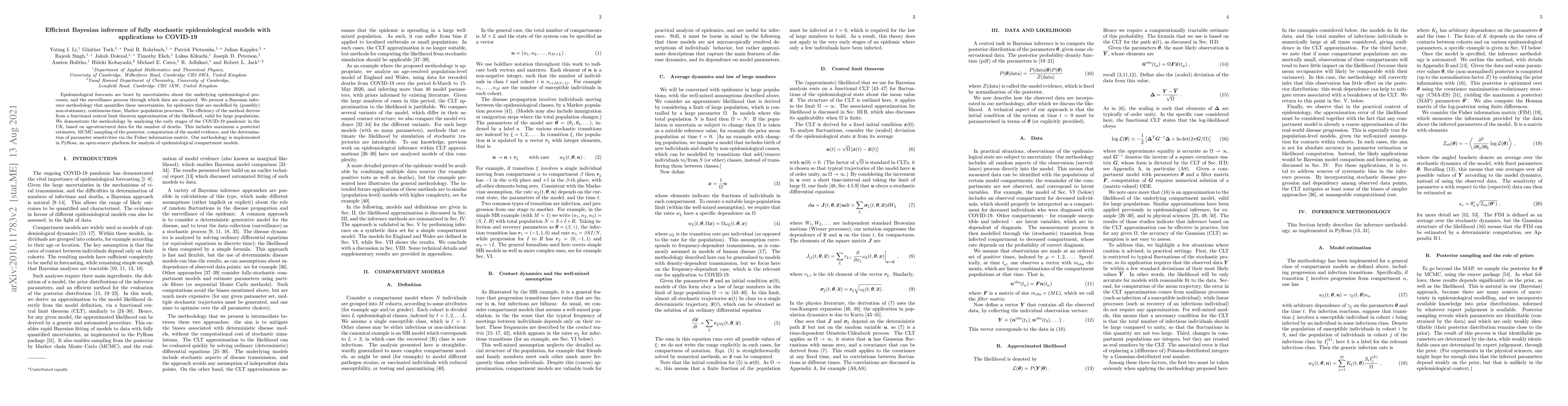 This paper introduces a Bayesian inference method for stochastic epidemiological models, efficiently quantifying uncertainties in large population processes. The method is demonstrated on early COVID-19 data in the UK, showcasing its application through posterior sampling and sensitivity analysis, implemented in the open-source PyRoss platform.