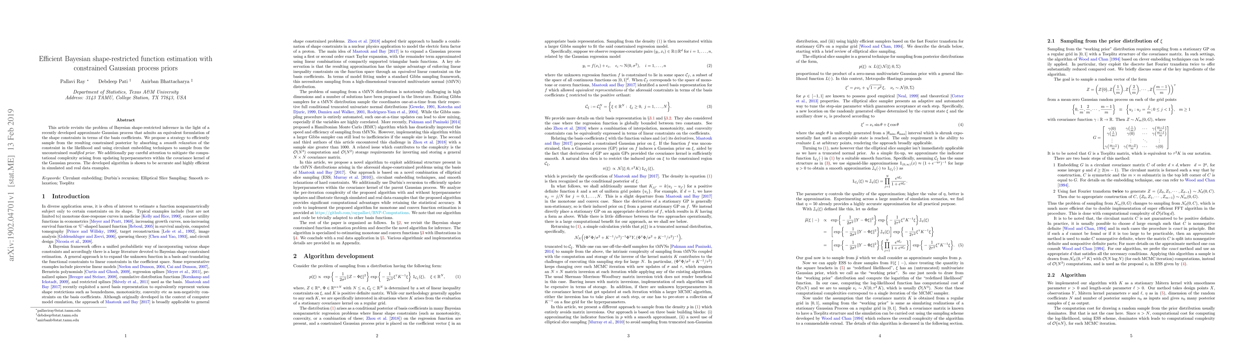 This paper proposes an efficient method for Bayesian shape-restricted function estimation using Gaussian process priors with constrained priors. It shows the developed algorithm to be accurate and highly efficient in simulated and real data examples.