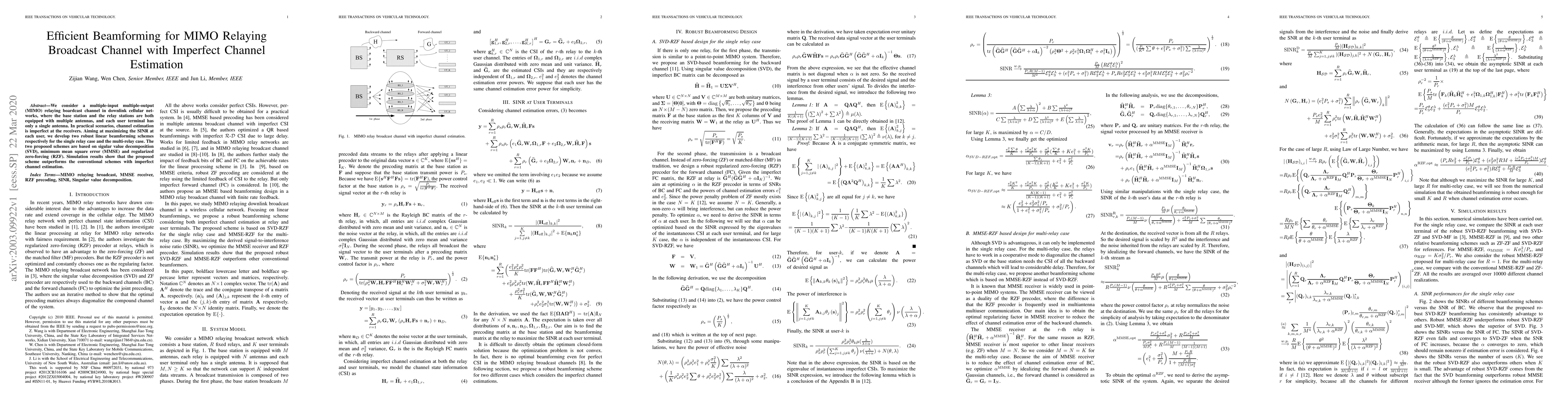 This paper proposes efficient linear beamforming schemes for MIMO relaying broadcast channels in cellular networks, focusing on scenarios with imperfect channel estimation. The developed schemes, based on SVD, MMSE, and RZF, aim to maximize the SINR for each user, demonstrating superior performance over conventional methods in simulations.