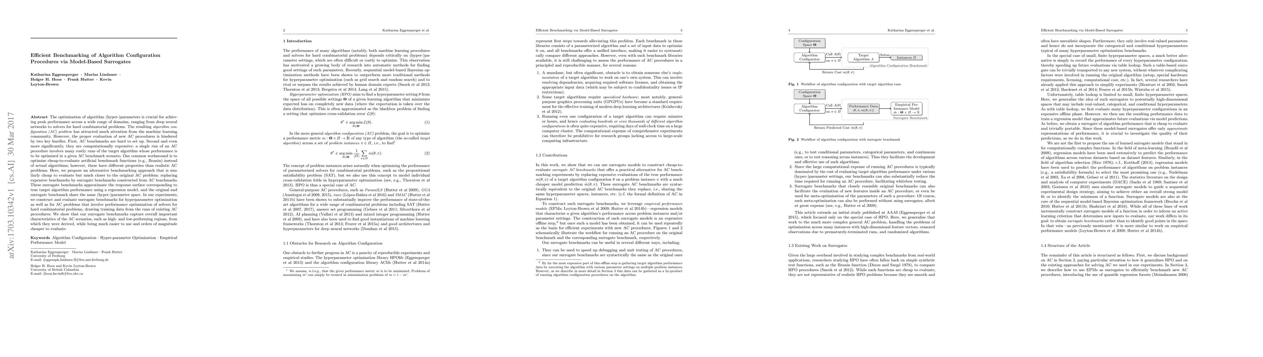 Researchers propose a new method to efficiently benchmark algorithm configuration procedures using model-based surrogates, which approximate the response surface of expensive benchmarks in a much cheaper way.