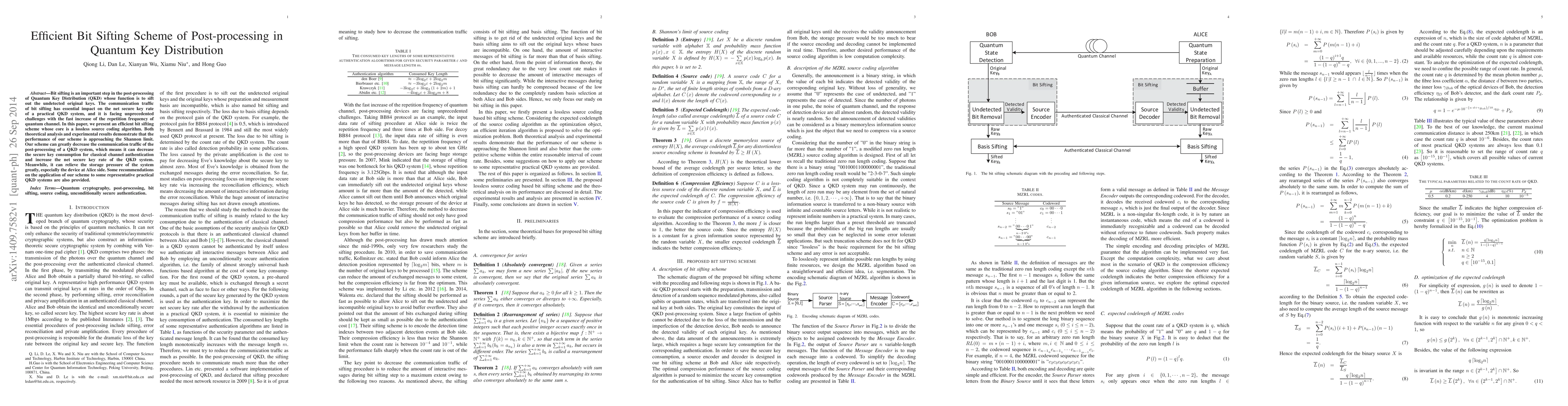 This paper proposes an efficient bit sifting scheme for post-processing in Quantum Key Distribution (QKD) using a lossless source coding algorithm, which significantly reduces communication traffic and secure key consumption, approaching the Shannon limit and enhancing the net secure key rate.