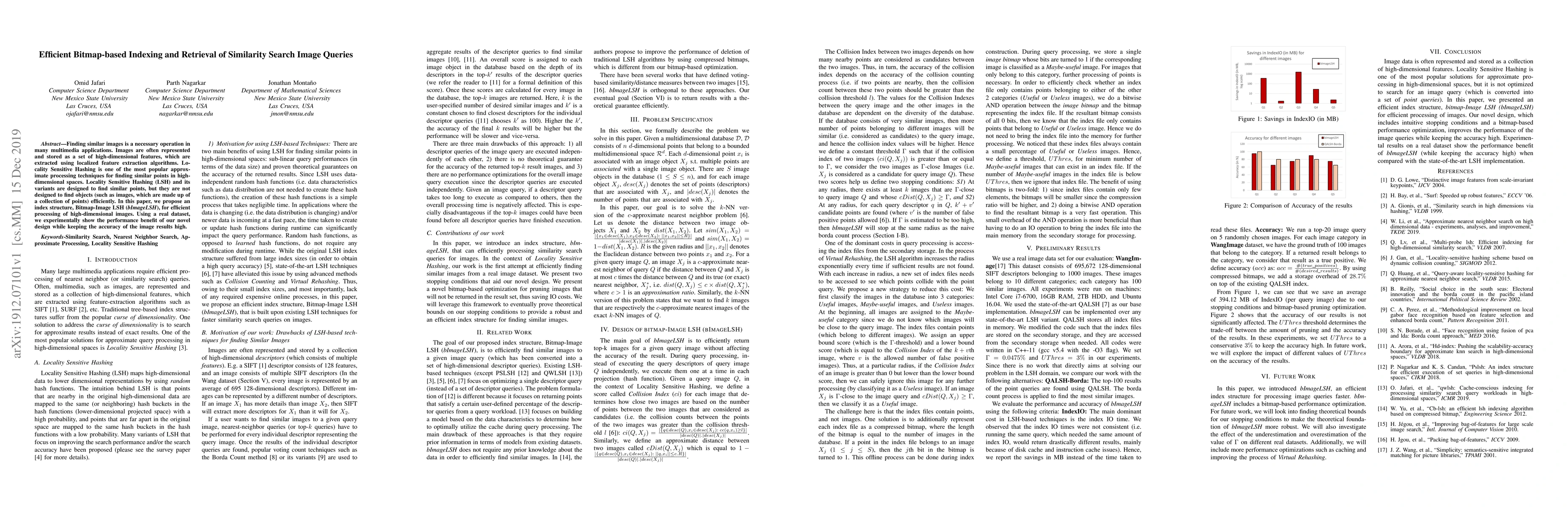 Finding similar images is a necessary operation in many multimedia applications. Images are often represented and stored as a set of high-dimensional features, which are extracted using localized feature extraction algorithms. Locality Sensitive Hashing is one of the most popular approximate processing techniques for finding similar points in high-dimensional spaces. Locality Sensitive Hashing (LSH) and its variants are designed to find similar points, but they are not designed to find objects (such as images, which are made up of a collection of points) efficiently. In this paper, we propose an index structure, Bitmap-Image LSH (bImageLSH), for efficient processing of high-dimensional images. Using a real dataset, we experimentally show the performance benefit of our novel design while keeping the accuracy of the image results high.