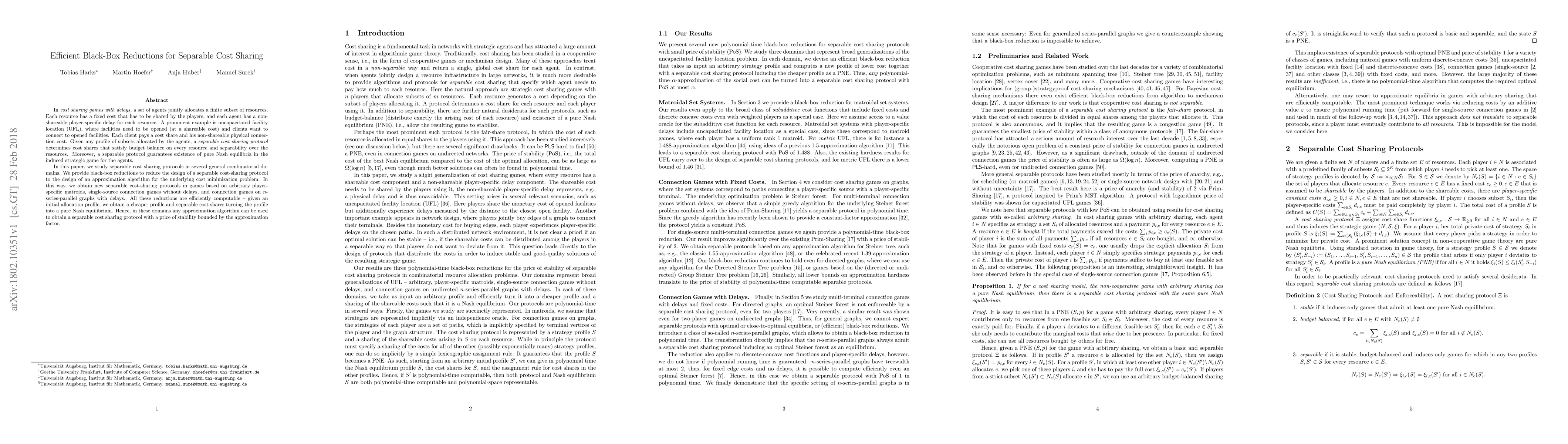 This paper develops efficient black-box reductions for designing separable cost-sharing protocols in various combinatorial domains, including matroids and connection games with delays. It leverages approximation algorithms for cost minimization to achieve pure Nash equilibria with bounded price of stability.