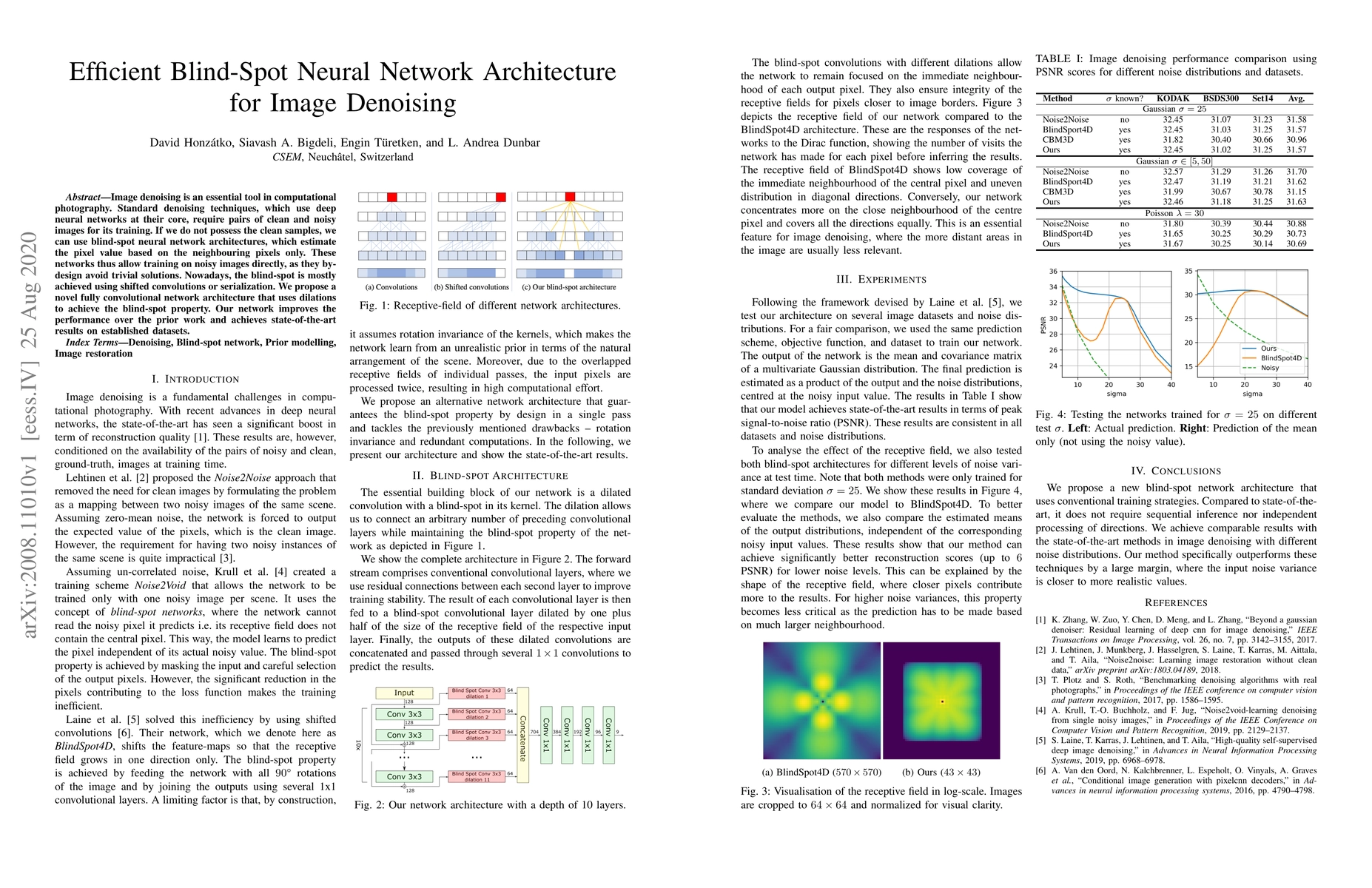 This research proposes a novel fully convolutional neural network for image denoising that employs dilated convolutions to achieve a blind-spot effect, allowing training directly on noisy images without clean samples. The proposed architecture outperforms existing methods and achieves state-of-the-art denoising performance on standard datasets.