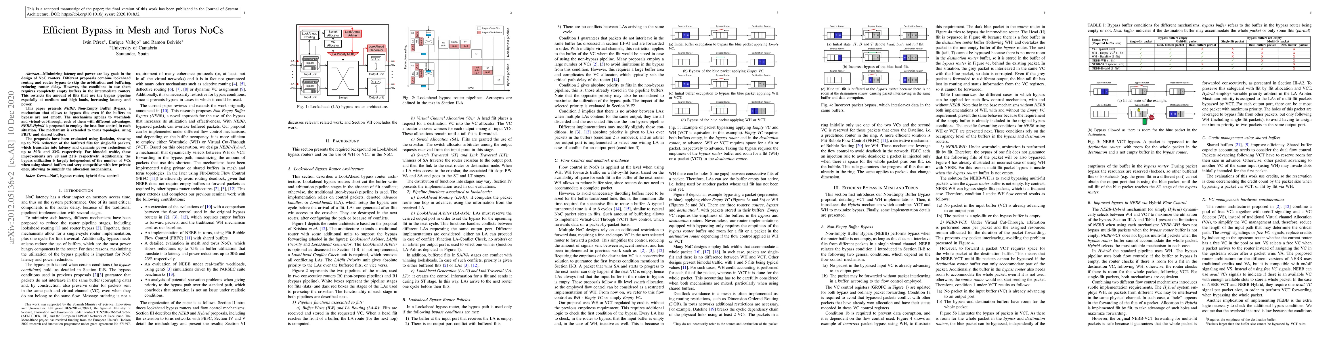 This paper introduces NEBB, a mechanism to bypass flits in Network-on-Chip (NoC) routers even when buffers are not empty, thus reducing latency and power. NEBB-Hybrid optimizes flow control for different situations, and extends the approach to torus topologies. Evaluations show significant reductions in buffered flits, latency, and dynamic power, with bypass utilization being largely independent of the number of virtual channels.