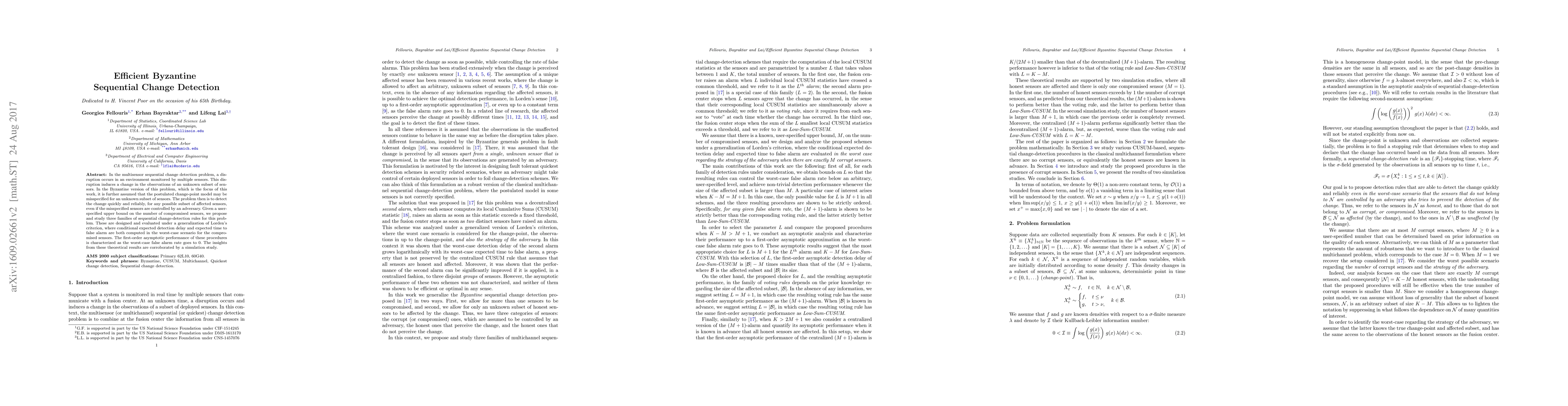 This paper proposes three families of sequential change-detection rules for the Byzantine version of the multisensor change detection problem, where some sensors may be compromised by an adversary. The rules are evaluated under a generalized Lorden's criterion, and their asymptotic performance is analyzed and validated through simulations.