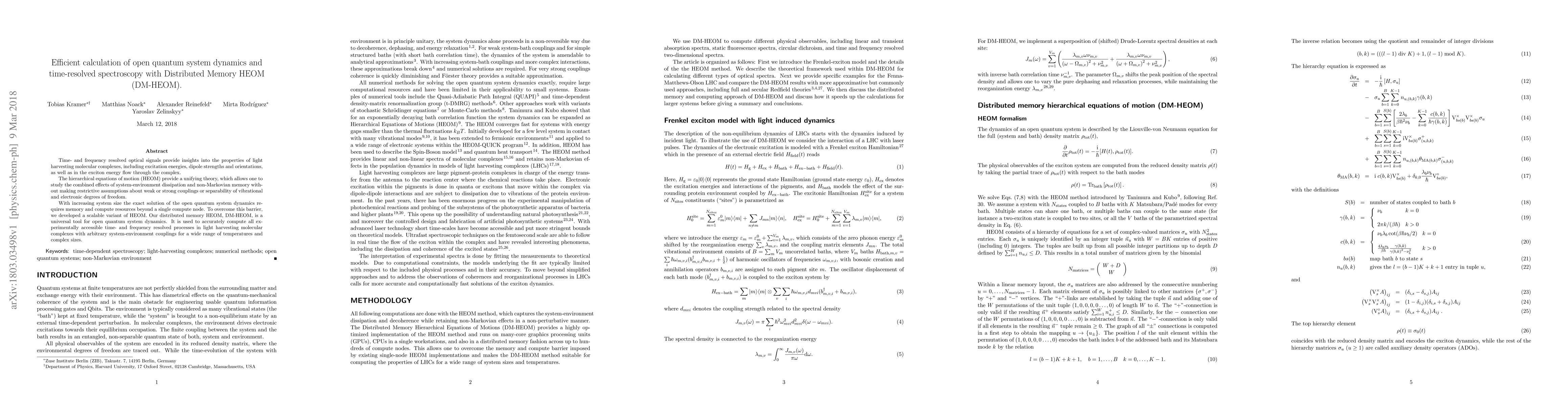 Researchers developed a scalable method called DM-HEOM to study open quantum system dynamics in light harvesting molecular complexes, accurately computing time- and frequency resolved processes with arbitrary system-environment couplings.
