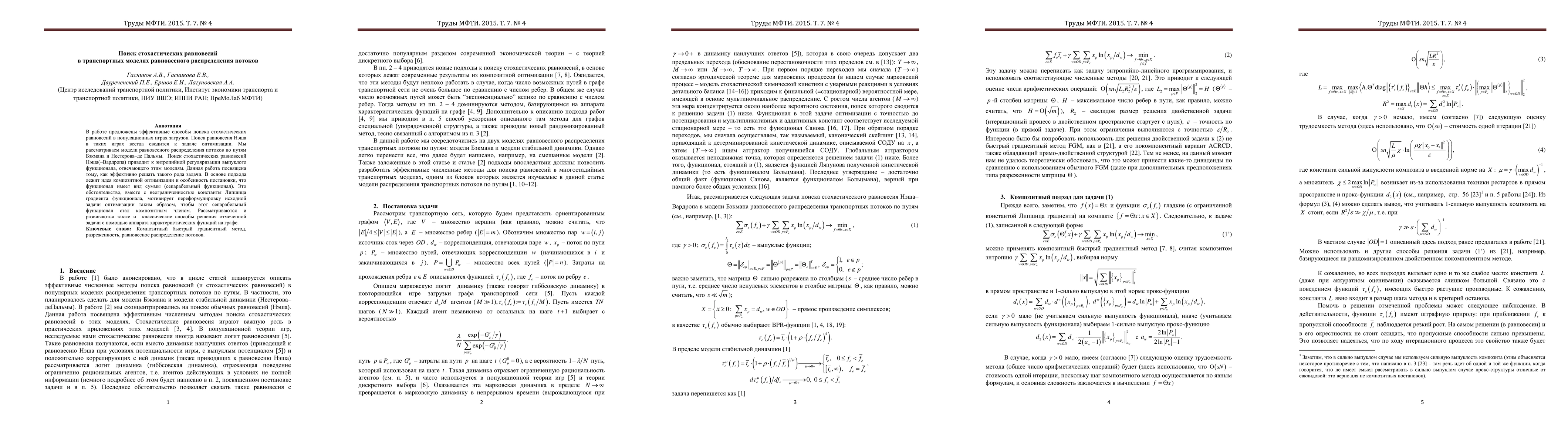 We propose composite approache to the special sum-type convex optimization problem with affine restriction and special entropy type regularization. Since the fuctional has a penalty type form, we reformulate initial conditional optimization problem in a special unconstrained form that allows us to put the penalty type functional into the composite term. We also describe the characteristic functions on graphs technique (Yu. Nesterov, 2007) in application to the dual problem.