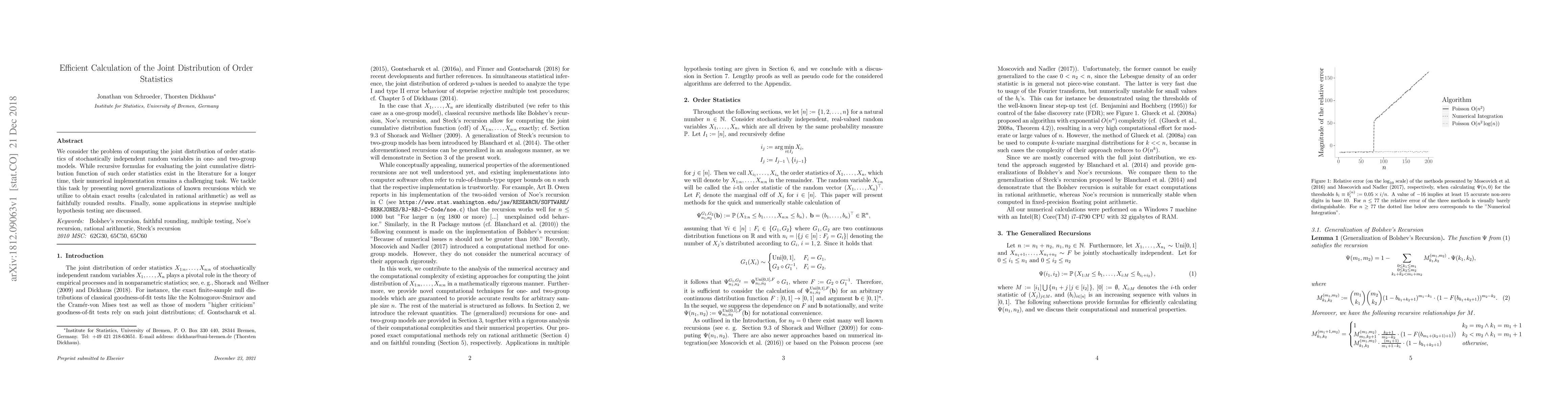 Researchers developed efficient methods to calculate the joint distribution of order statistics from independent random variables, providing a foundation for applications in hypothesis testing.