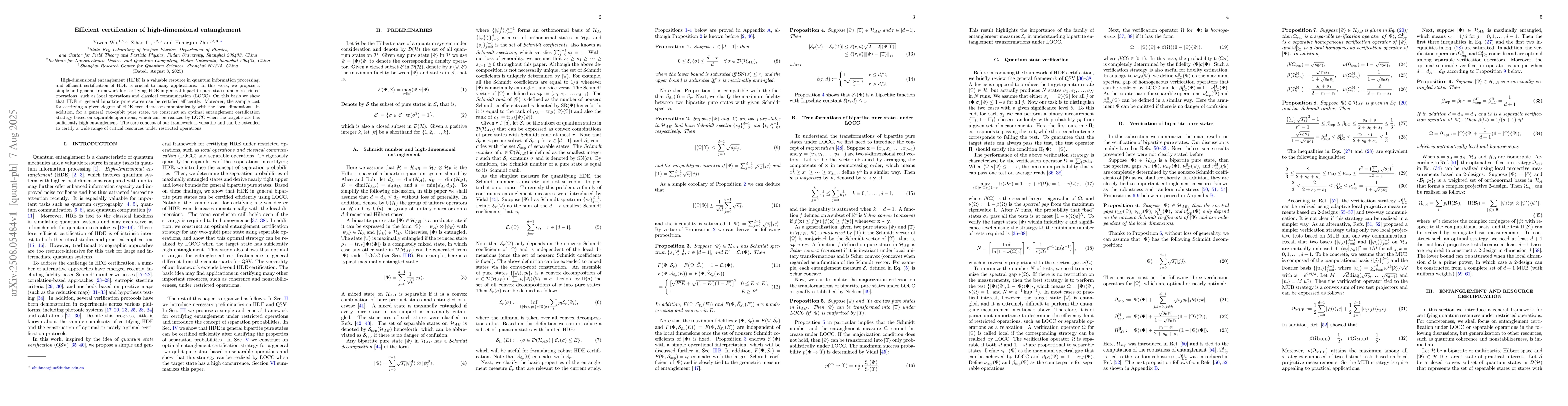 High-dimensional entanglement (HDE) is a valuable resource in quantum information processing, and efficient certification of HDE is crucial to many applications. In this work, we propose a simple and general framework for certifying HDE in general bipartite pure states under restricted operations, such as local operations and classical communication (LOCC). On this basis we show that HDE in general bipartite pure states can be certified efficiently. Moreover, the sample cost for certifying a given degree of HDE even decreases monotonically with the local dimensions. In addition, for a general two-qubit pure state, we construct an optimal entanglement certification strategy based on separable operations, which can be realized by LOCC when the target state has sufficiently high entanglement. The core concept of our framework is versatile and can be extended to certify a wide range of critical resources under restricted operations.