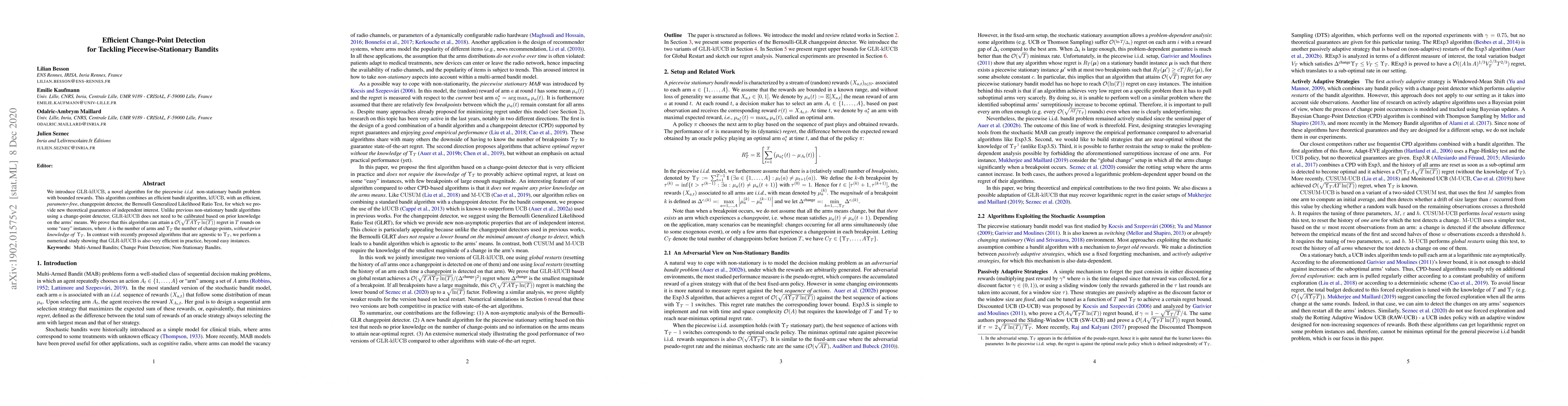 This paper introduces GLR-klUCB, a novel algorithm for detecting change-points in non-stationary bandit problems, combining kl-UCB with a parameter-free changepoint detector. It achieves $O(\sqrt{TA\Upsilon_T\log(T)})$ regret without prior knowledge of change-points, and is shown to be efficient both theoretically and in practice.