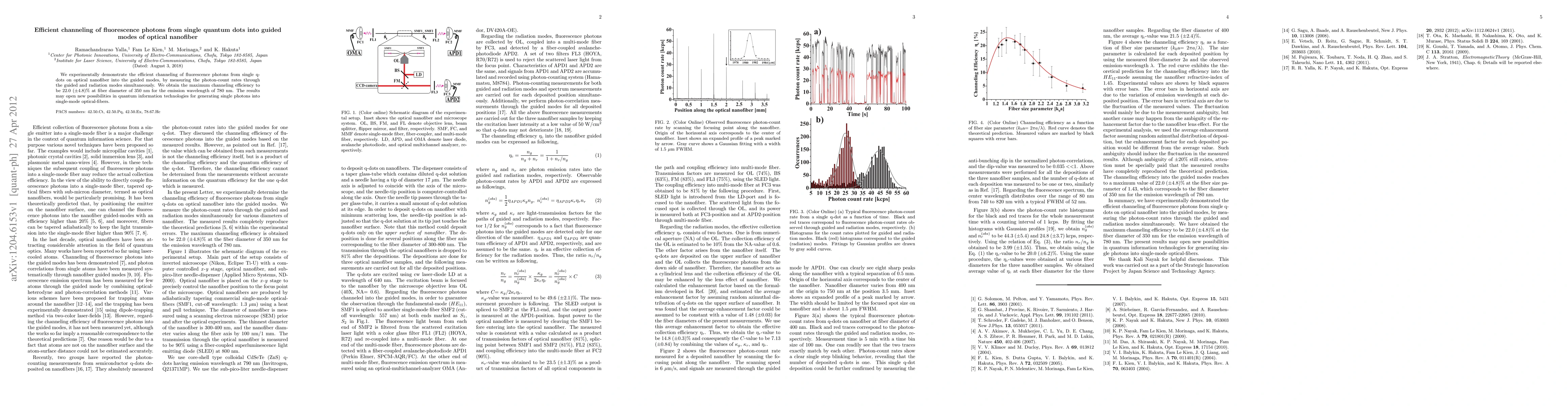 This research demonstrates the efficient channeling of fluorescence photons from single quantum dots into the guided modes of optical nanofibers, achieving a maximum efficiency of 22.0 (\pm4.8)%. The findings hold potential for advancing quantum information technologies by generating single photons in single-mode optical fibers.