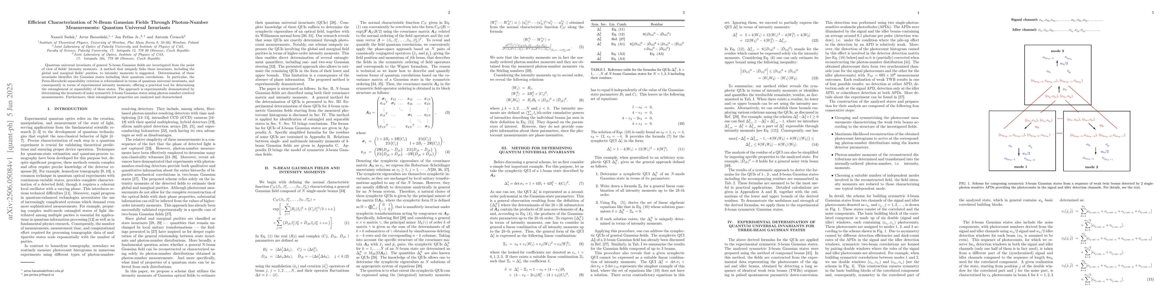 Quantum universal invariants of general N-beam Gaussian fields are investigated from the point of view of fields' intensity moments. A method that uniquely links these invariants, including the global and marginal fields' purities, to intensity moments is suggested. Determination of these invariants identifies the Gaussian states including their quantum correlations. In particular, the Peres-Horodecki separability criterion is reformulated in terms of quantum universal invariants, and consequently in terms of experimental intensity moments, offering a practical tool for determining the entanglement or separability of these states. The approach is experimentally demonstrated by determining the invariants of noisy symmetric 3-beam Gaussian states using photon-number-resolved measurements. Furthermore, their entanglement properties are analyzed and characterized.