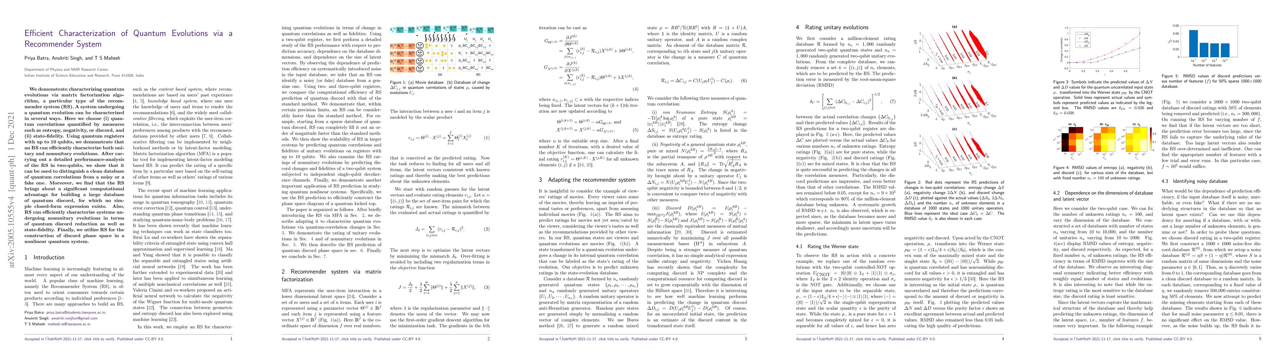 A recommender system efficiently characterizes quantum evolutions by analyzing quantum correlations and state-fidelity in systems with up to 10 qubits.