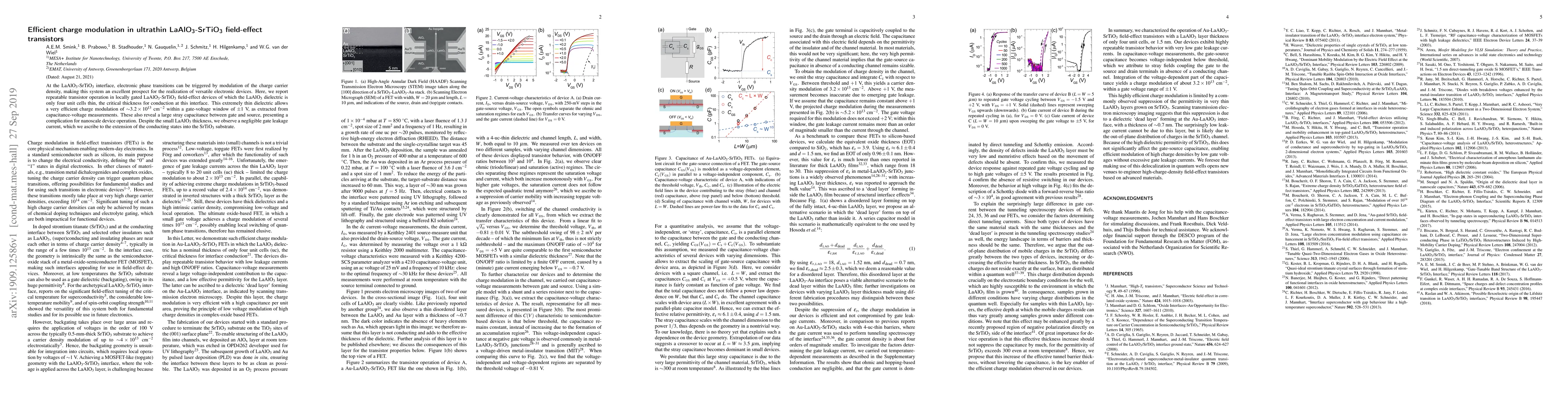This paper reports efficient charge modulation in ultrathin LaAlO$_3$-SrTiO$_3$ field-effect transistors, demonstrating repeatable transistor operation with a four-unit-cell-thick LaAlO$_3$ dielectric, achieving ${\sim}3.2\times10^{13}$ cm$^{-2}$ modulation within a $\pm1$ V gate-voltage window. Despite the small dielectric thickness, negligible gate leakage current is observed due to conducting states extending into the SrTiO$_3$ substrate.