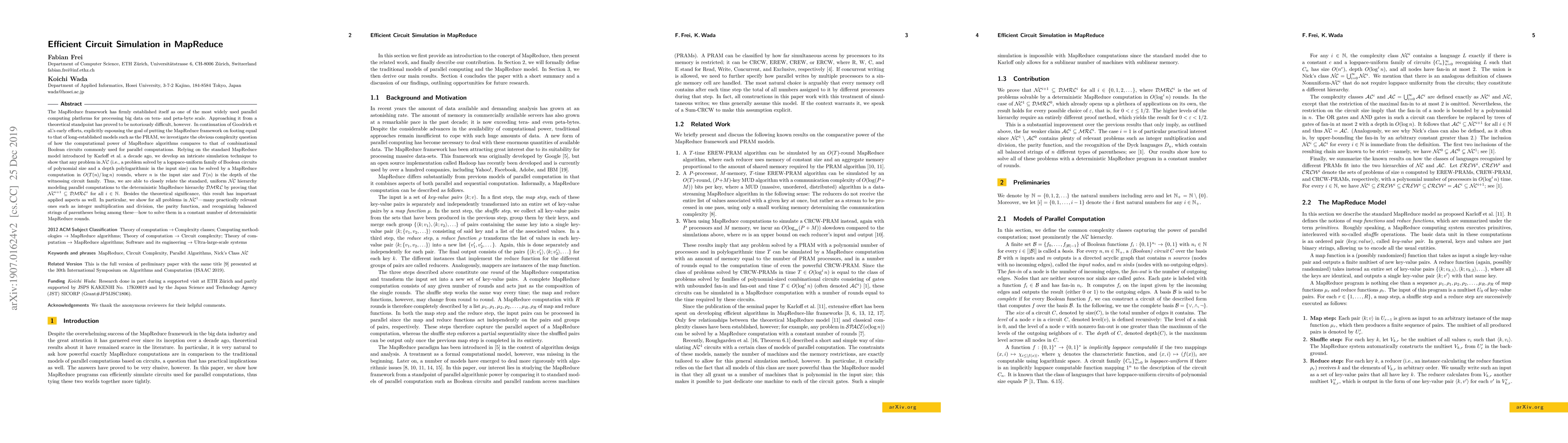 This paper develops a simulation technique to show that MapReduce can solve any problem in NC in O(T(n)/log n) rounds, establishing a strong theoretical link between the NC and MapReduce computational hierarchies, and demonstrating practical efficiency for problems like integer arithmetic and balanced string recognition.
