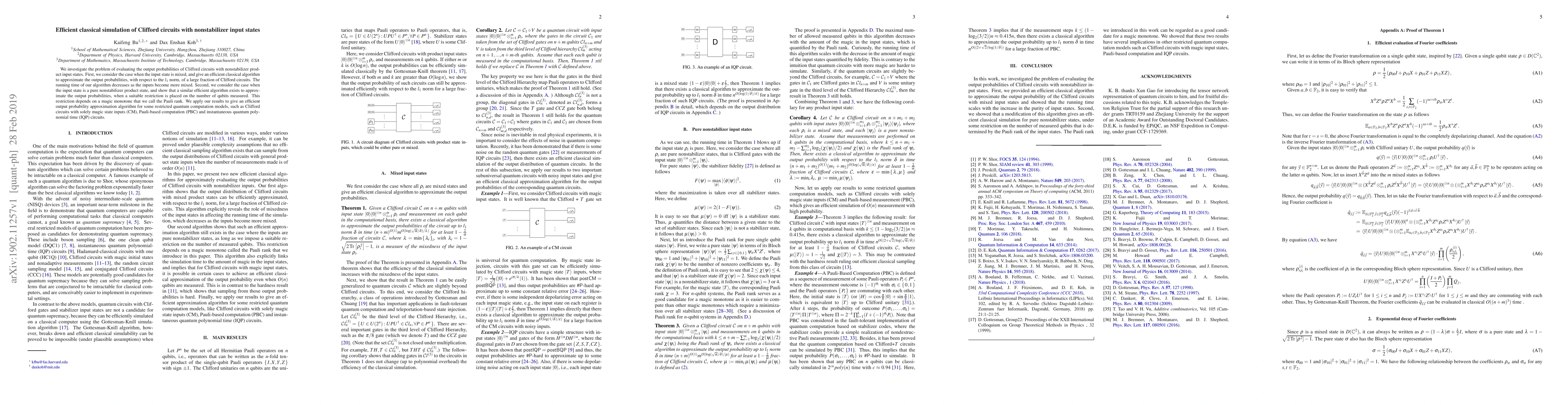 This paper presents efficient classical algorithms for approximating the output probabilities of Clifford circuits when input states are either mixed or pure nonstabilizer product states. The algorithms' running times decrease with more mixed inputs, and a restriction based on the Pauli rank is necessary for pure nonstabilizer inputs. The results extend to restricted quantum computation models like CM, PBC, and IQP circuits.