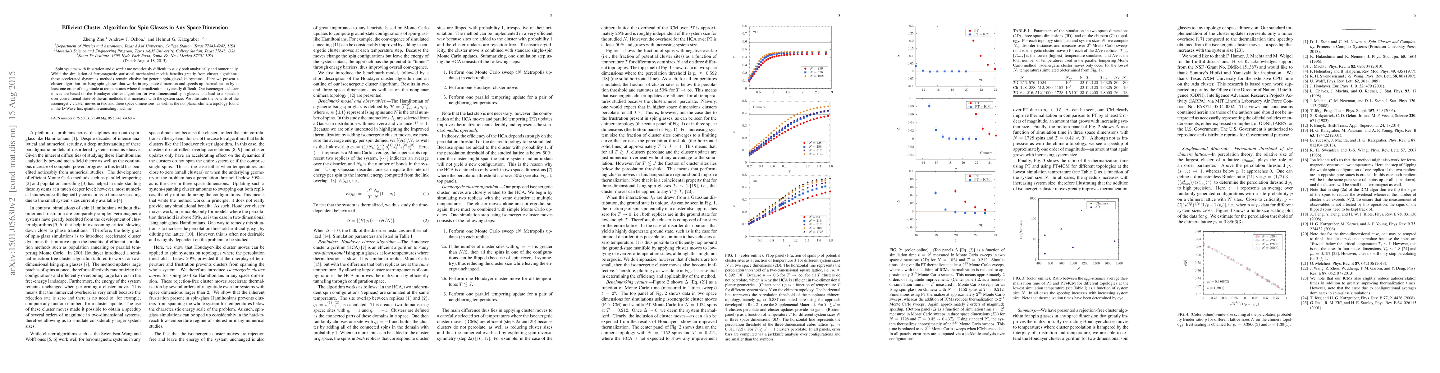 Spin systems with frustration and disorder are notoriously difficult to study both analytically and numerically. While the simulation of ferromagnetic statistical mechanical models benefits greatly from cluster algorithms, these accelerated dynamics methods remain elusive for generic spin-glass-like systems. Here we present a cluster algorithm for Ising spin glasses that works in any space dimension and speeds up thermalization by at least one order of magnitude at temperatures where thermalization is typically difficult. Our isoenergetic cluster moves are based on the Houdayer cluster algorithm for two-dimensional spin glasses and lead to a speedup over conventional state-of-the-art methods that increases with the system size. We illustrate the benefits of the isoenergetic cluster moves in two and three space dimensions, as well as the nonplanar chimera topology found in the D-Wave Inc.~quantum annealing machine.