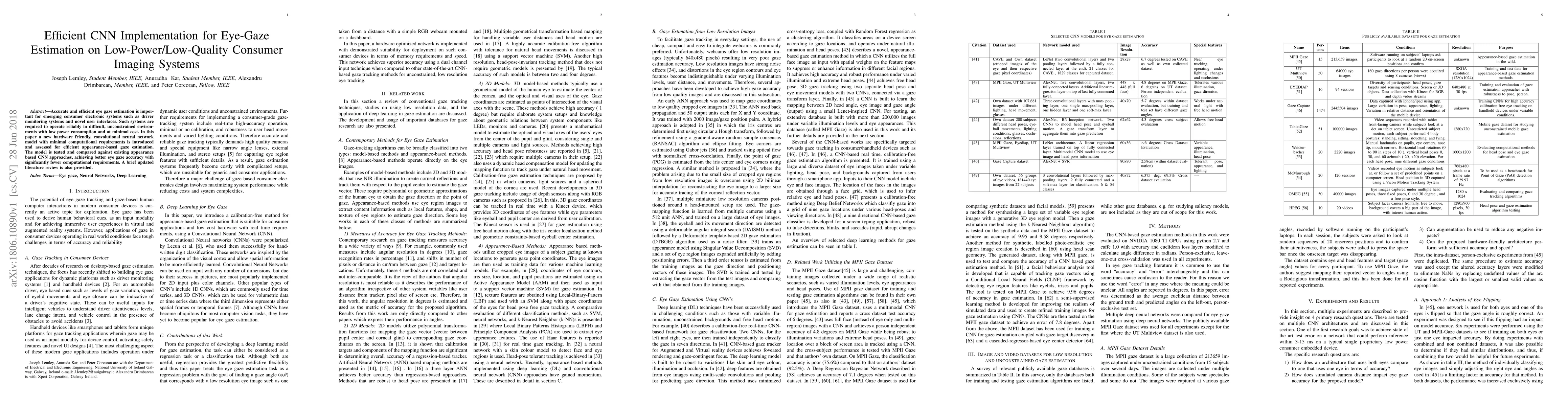 This paper introduces a hardware-friendly, low-computational convolutional neural network model for efficient eye-gaze estimation in low-power, low-quality consumer imaging systems, achieving higher accuracy with fewer computational requirements compared to existing methods. The model is particularly suited for applications like driver monitoring and novel user interfaces.