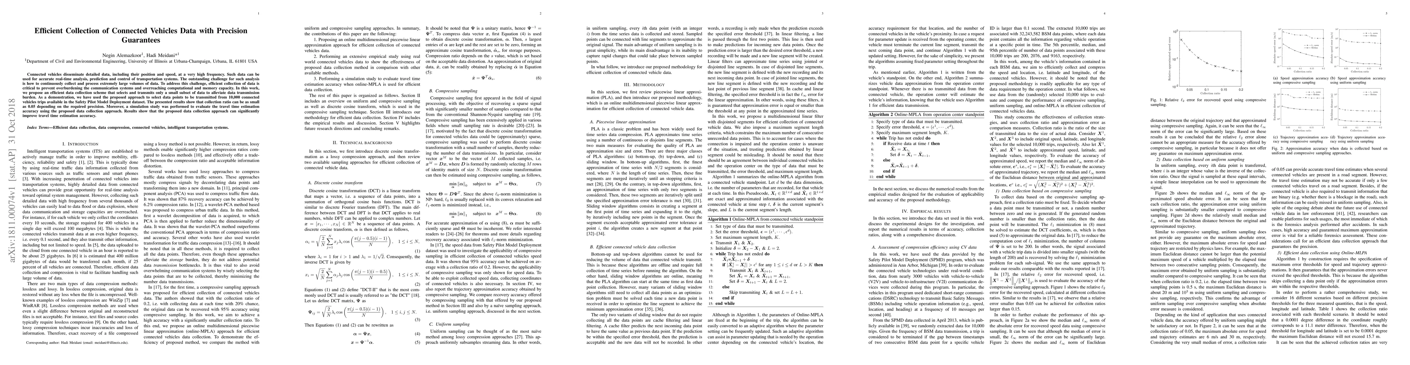 Researchers propose an efficient data collection scheme for connected vehicles to reduce transmission burden, achieving a collection ratio as low as 0.05 with high precision, and improving travel time estimation accuracy.