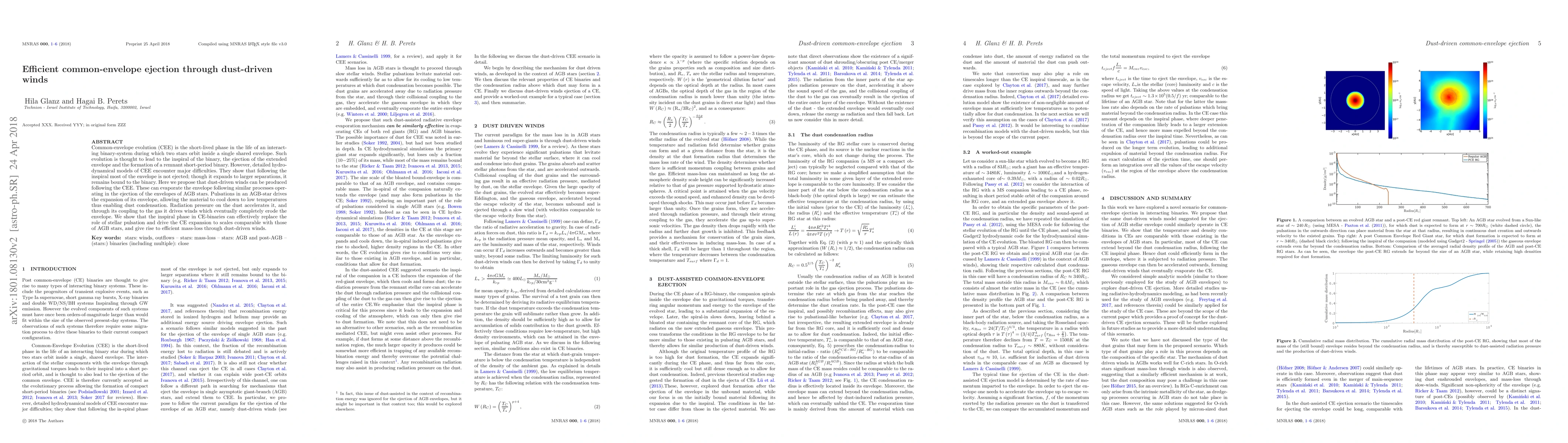 Common-envelope evolution (CEE) is the short-lived phase in the life of an interacting binary-system during which two stars orbit inside a single shared envelope. Such evolution is thought to lead to the inspiral of the binary, the ejection of the extended envelope and the formation of a remnant short-period binary. However, detailed hydrodynamical models of CEE encounter major difficulties. They show that following the inspiral most of the envelope is not ejected; though it expands to larger separations, it remains bound to the binary. Here we propose that dust-driven winds can be produced following the CEE. These can evaporate the envelope following similar processes operating in the ejection of the envelopes of AGB stars. Pulsations in an AGB-star drives the expansion of its envelope, allowing the material to cool down to low temperatures thus enabling dust condensation. Radiation pressure on the dust accelerates it, and through its coupling to the gas it drives winds which eventually completely erode the envelope. We show that the inspiral phase in CE-binaries can effectively replace the role of stellar pulsation and drive the CE expansion to scales comparable with those of AGB stars, and give rise to efficient mass-loss through dust-driven winds.