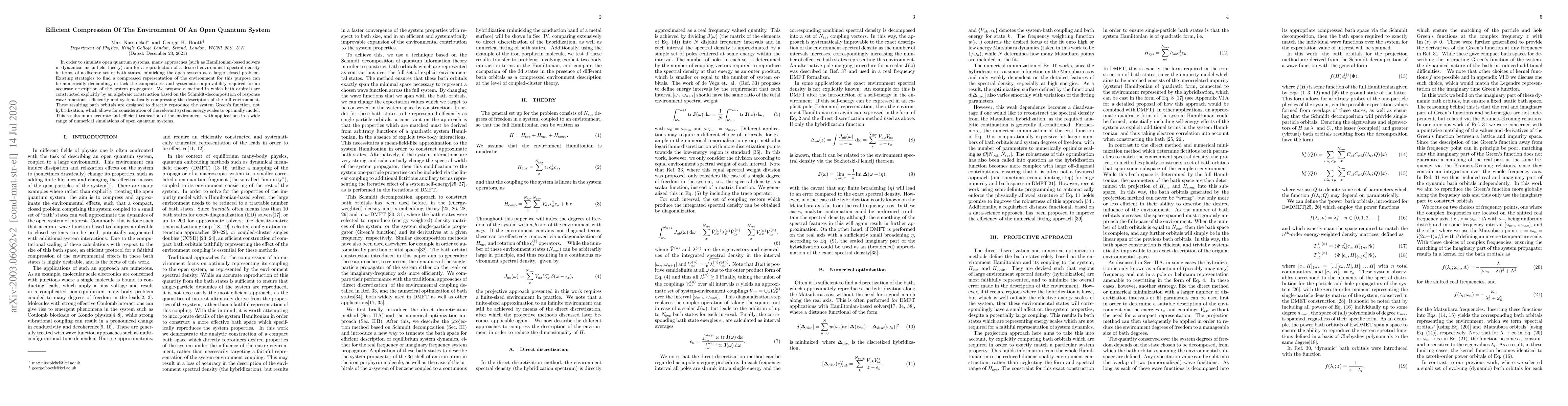 Researchers propose a method to efficiently compress the environment of an open quantum system, reducing computational demands while maintaining accuracy, using bath orbitals constructed from Schmidt-decomposition of response wave functions.