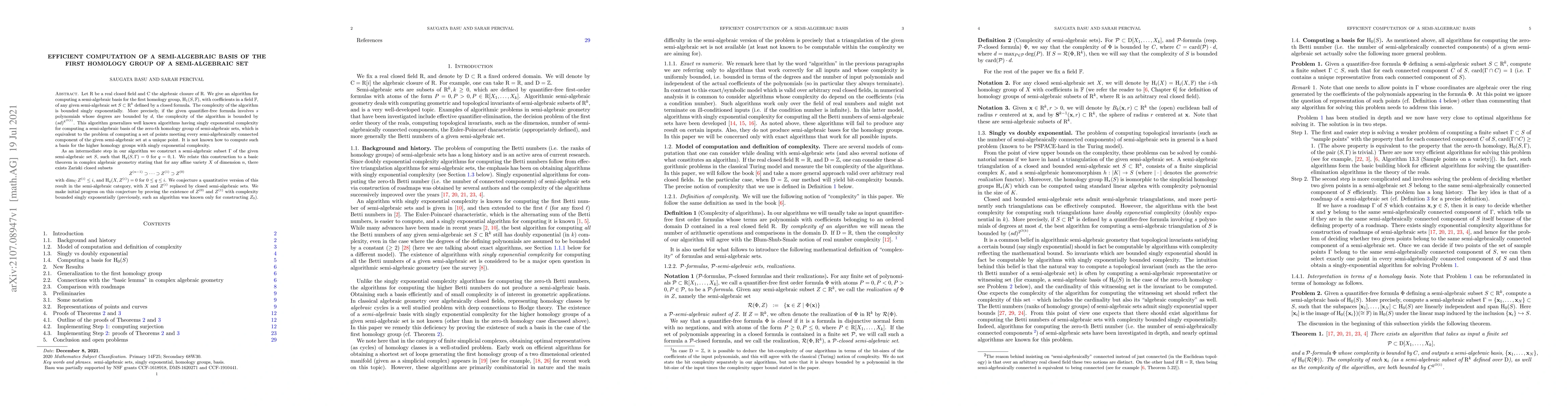 This paper presents an algorithm for computing a semi-algebraic basis for the first homology group of a semi-algebraic set with singly exponential complexity. It also constructs a semi-algebraic subset to simplify the homology computation and makes progress on a conjecture related to the existence of such subsets.