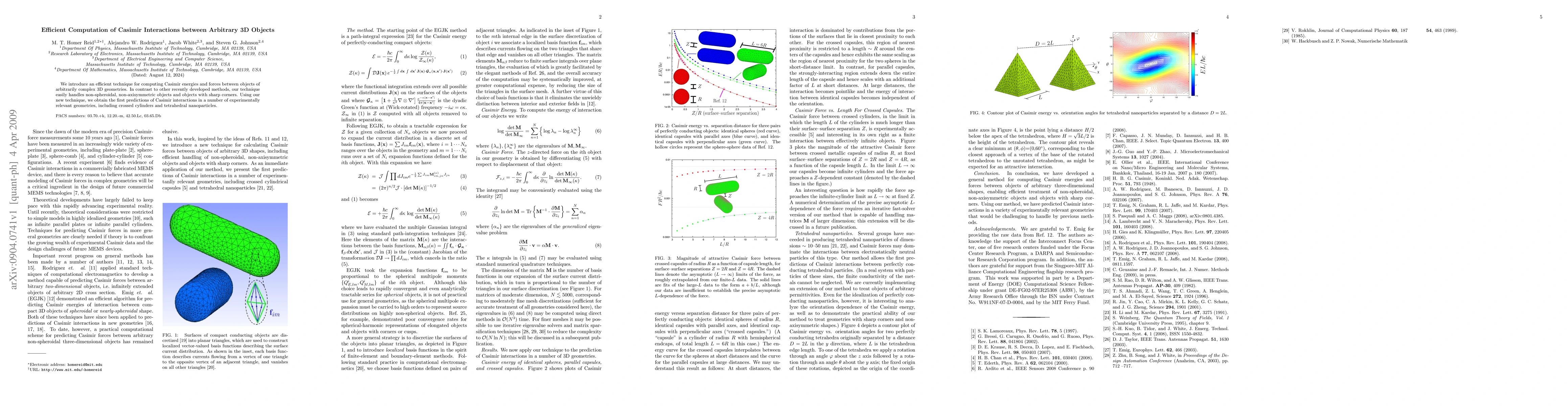 This paper presents an efficient computational method for determining Casimir energies and forces between complex 3D objects, including those with sharp corners and non-axisymmetric shapes. The new technique enables predictions of Casimir interactions in experimentally relevant geometries like crossed cylinders and tetrahedral nanoparticles.