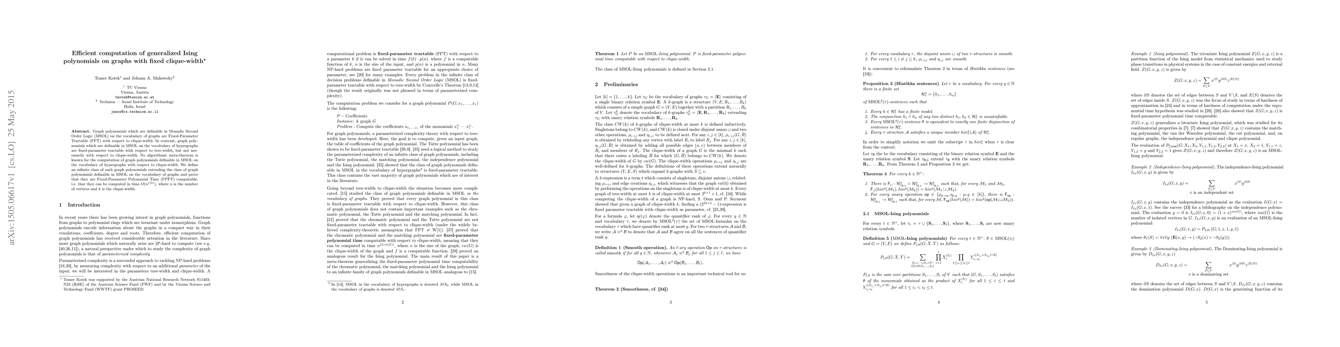 This paper presents an efficient algorithm for computing generalized Ising polynomials on graphs with fixed clique-width, demonstrating that these polynomials are Fixed-Parameter Polynomial Time (FPPT) computable. It extends the class of MSOL-definable graph polynomials and resolves the algorithmic tractability of these polynomials with respect to clique-width.