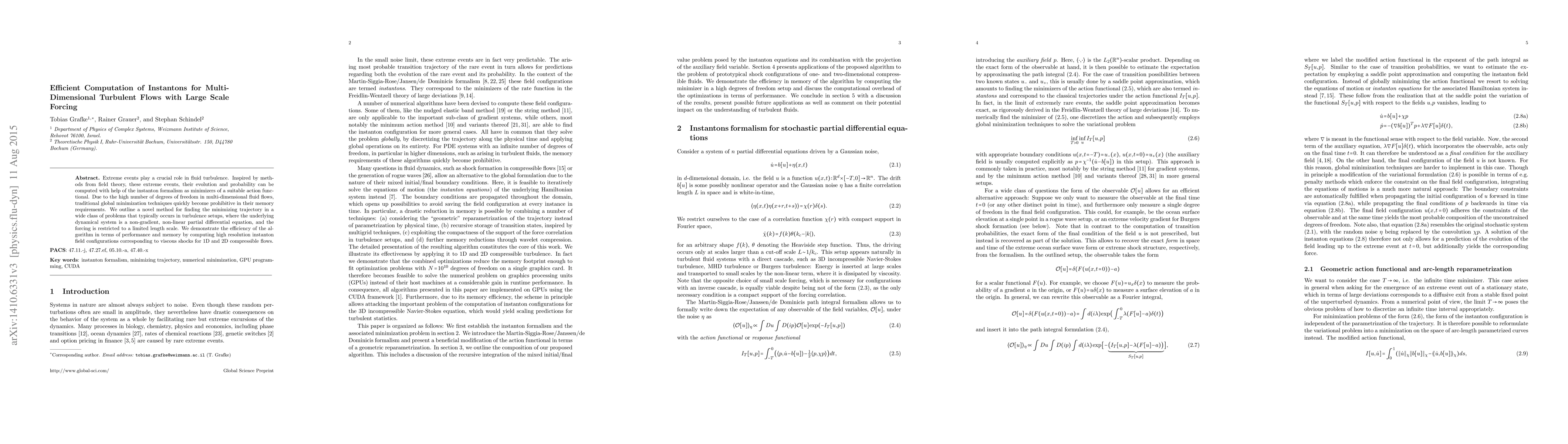 A new method efficiently computes instantons for 3D turbulent flows with large-scale forcing, solving a complex problem in fluid dynamics that was previously too memory-intensive.