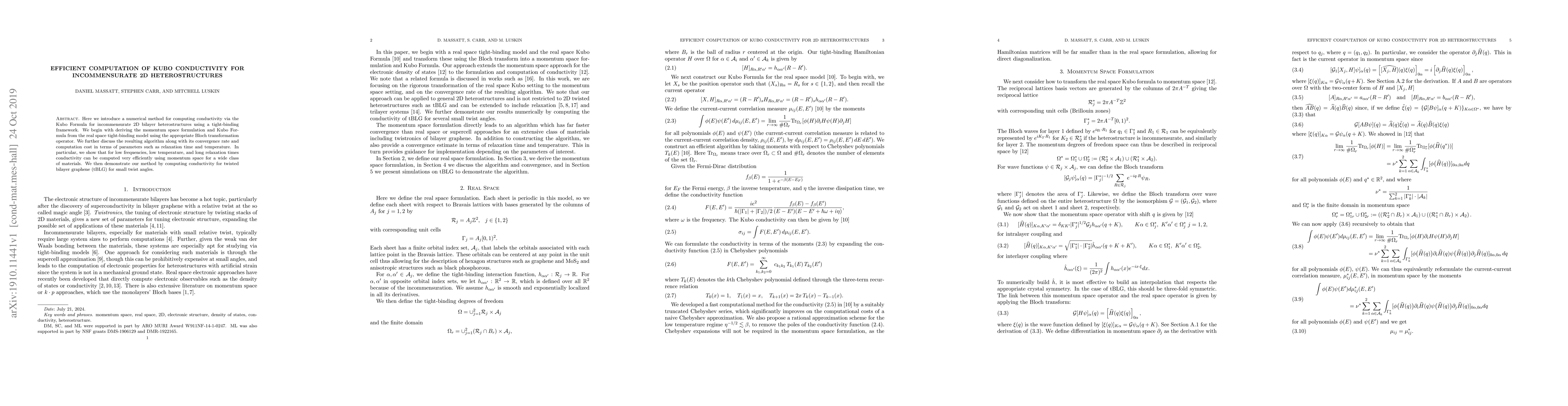 Researchers developed a method to efficiently compute conductivity in 2D heterostructures using the Kubo formula, focusing on low frequencies, temperatures, and long relaxation times for accurate results.