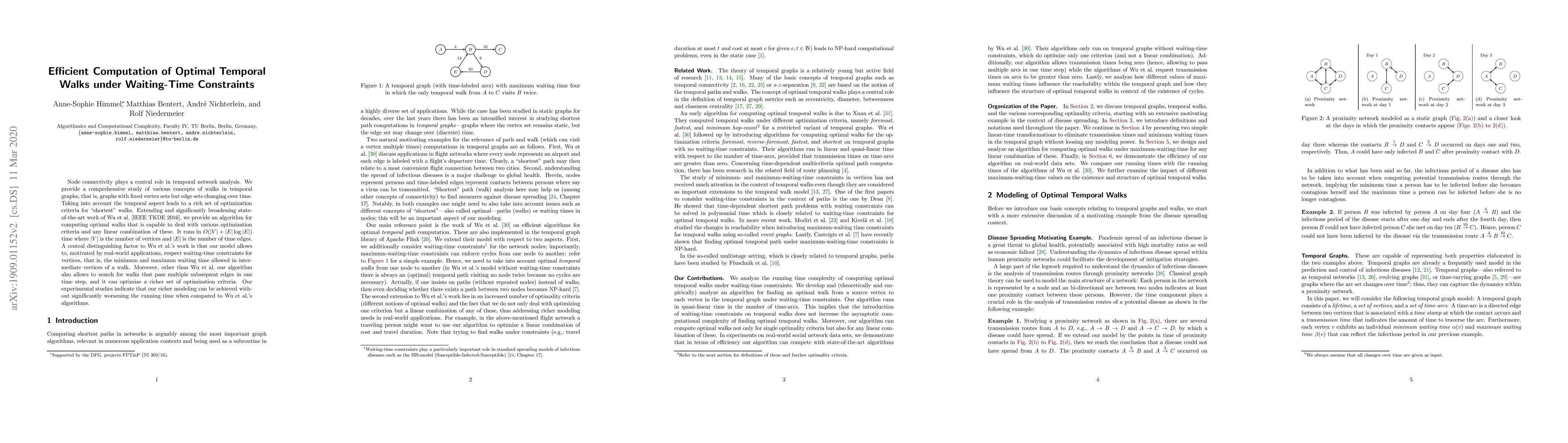 A new algorithm computes optimal temporal walks in graphs with time-varying edges while respecting waiting-time constraints, outperforming existing methods in terms of efficiency and flexibility.