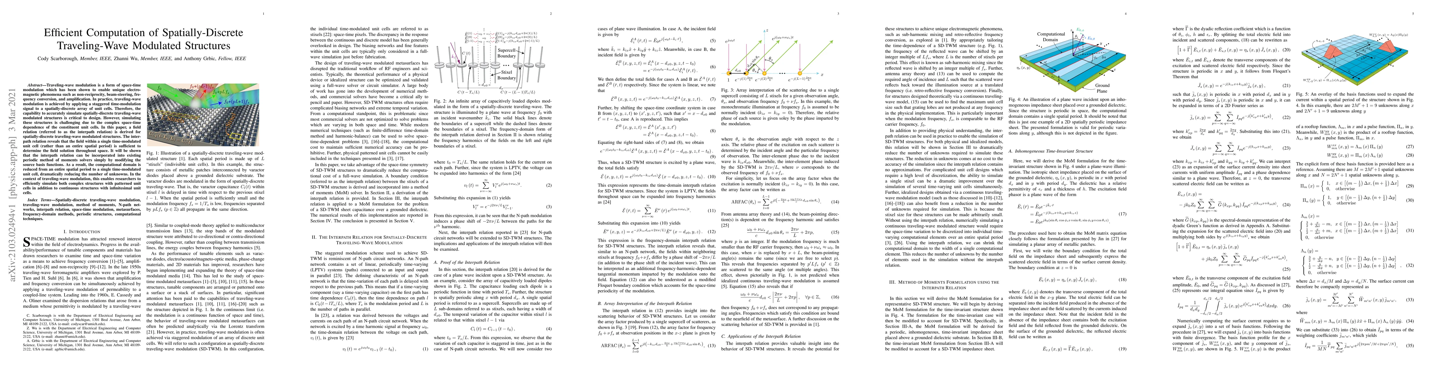 This paper introduces an interpath relation to efficiently simulate spatially-discrete traveling-wave modulated structures by reducing the computational domain from an entire spatial period to a single time-modulated unit cell, significantly decreasing the number of unknowns. This approach allows for efficient simulation of both complex and continuous structures.