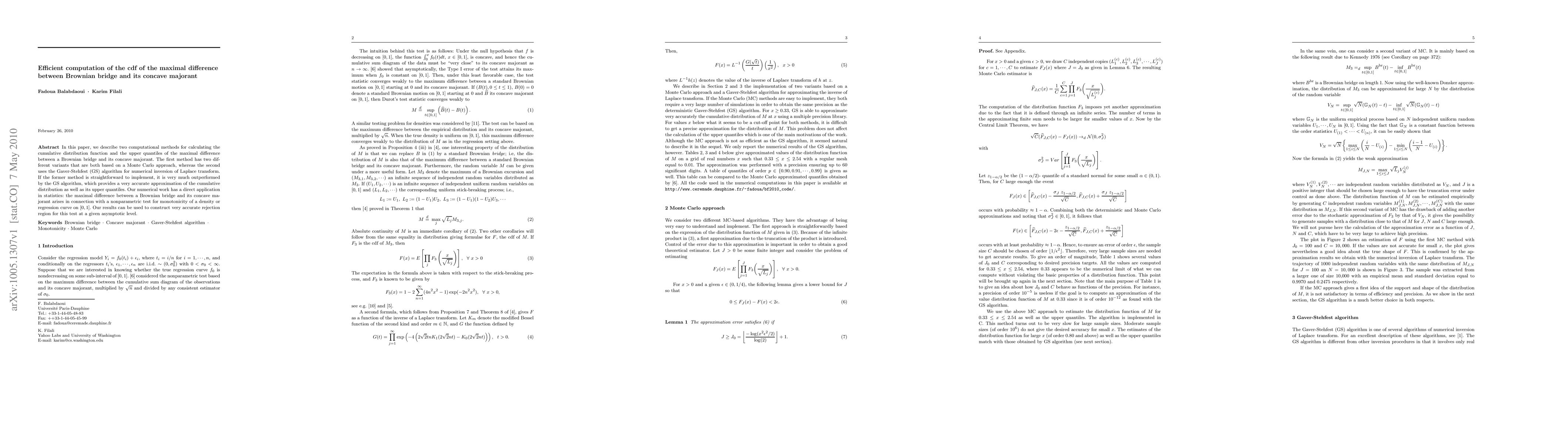 This paper presents two methods for computing the cumulative distribution function and upper quantiles of the maximal difference between a Brownian bridge and its concave majorant: a Monte Carlo approach and the Gaver-Stehfest algorithm. The Gaver-Stehfest method is more accurate and efficient, with direct applications in constructing rejection regions for nonparametric tests of monotonicity.