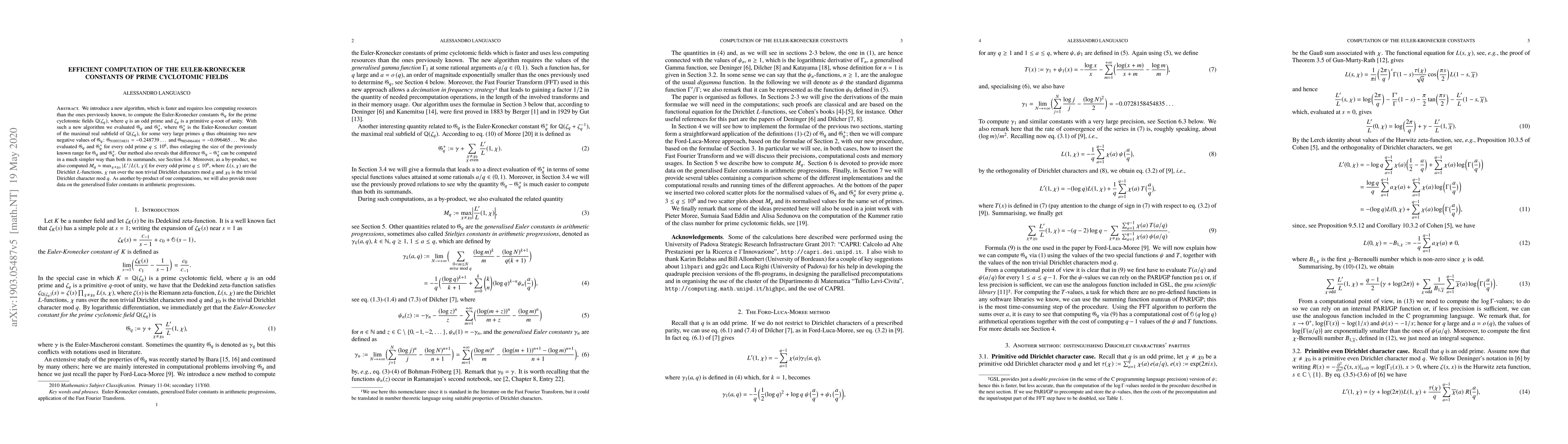 This paper introduces a novel algorithm for efficiently computing the Euler-Kronecker constants $\mathfrak{G}_q$ for prime cyclotomic fields $\mathbb{Q}(\zeta_q)$, significantly reducing computational time and resources. The authors evaluated $\mathfrak{G}_q$ and $\mathfrak{G}_q^+$ for large primes, obtaining new negative values and expanding the known range for $\mathfrak{G}_q$.