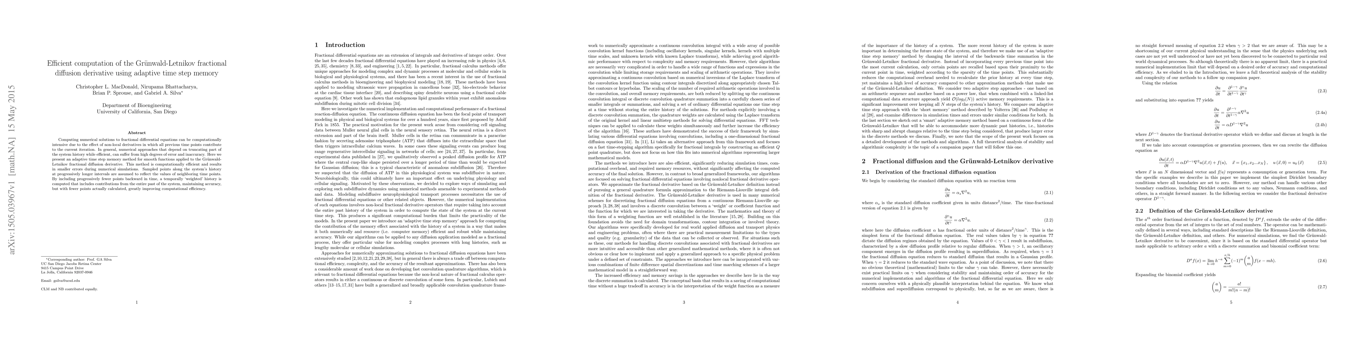 This paper proposes an adaptive time step memory method for efficiently computing the Grunwald-Letnikov fractional diffusion derivative, reducing computational costs while maintaining accuracy. The method uses sampled points at longer intervals to reflect neighboring time points, thus balancing accuracy and efficiency.